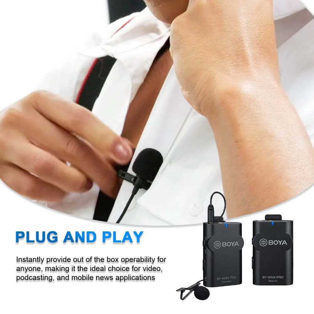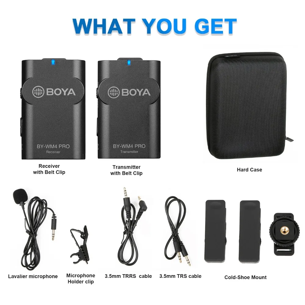 BOYA BY-WM4 ProСостоит из одного компактного передатчика (TX4 Pro), портативного приемника (RX4 Pro),