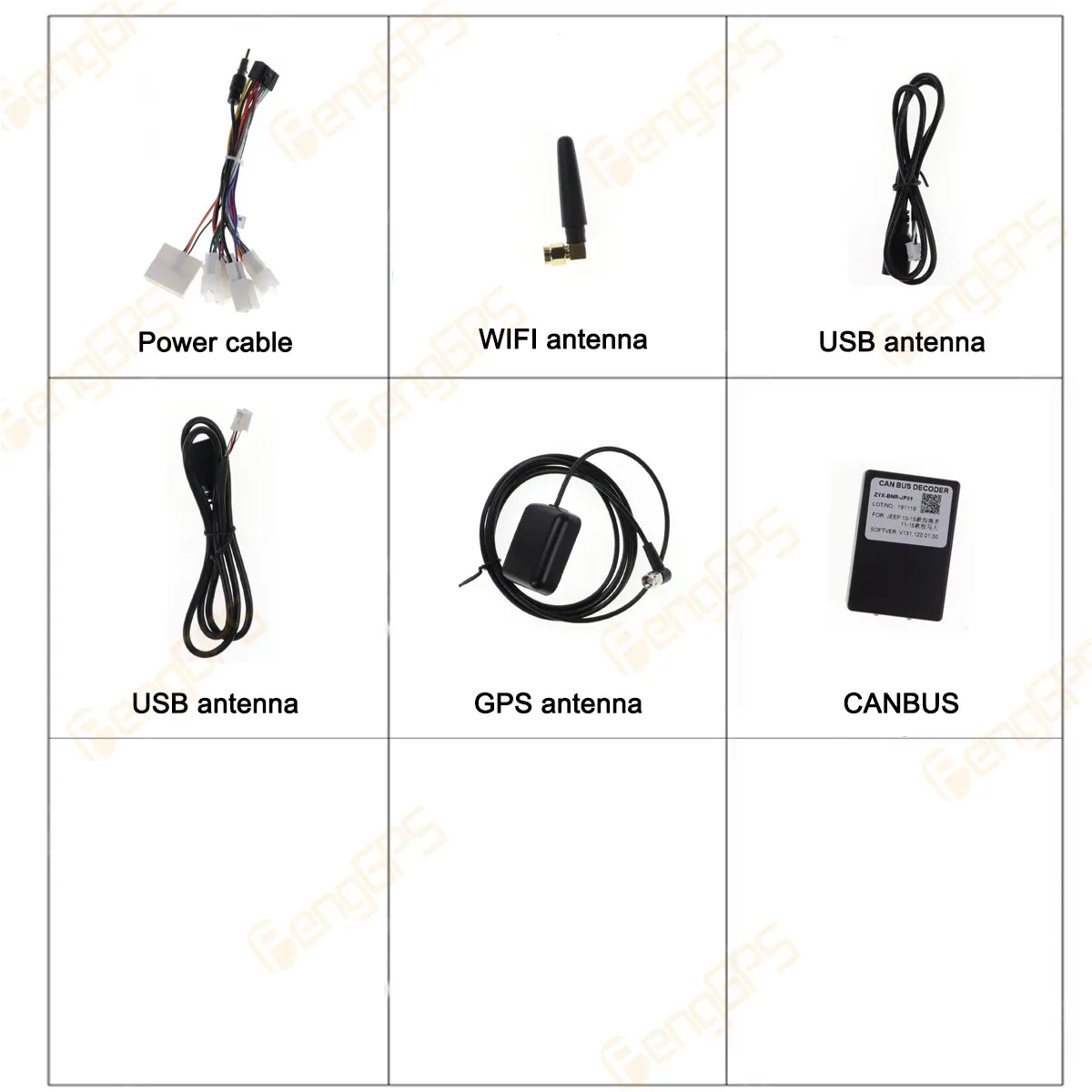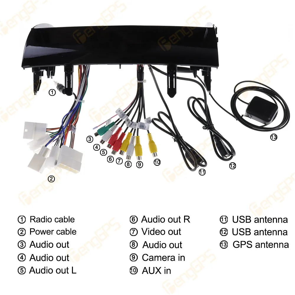 Наш продукт поставляется с GPS антенной, gps-картой для вашей страны, usb-адаптером, аудио и видео входным кабелем, кабелем питания... и т. д., все наборы для установки будут в посылка.
