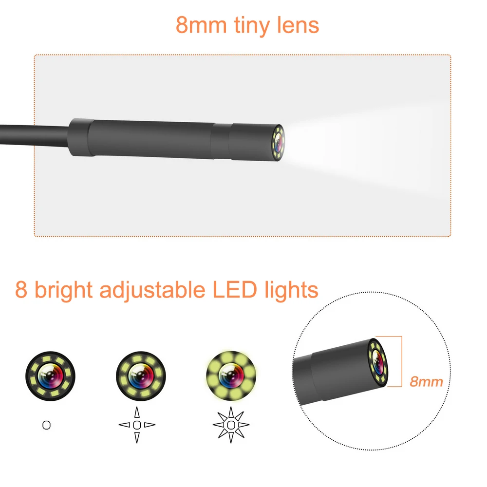 Эндоскоп камера Wifi 8 светодиодный светильник 8,0 мм 5 м IP67 гибкий жесткий кабель Змеиный бороскоп Инспекционная камера Android смартфон ПК