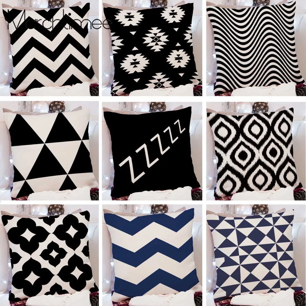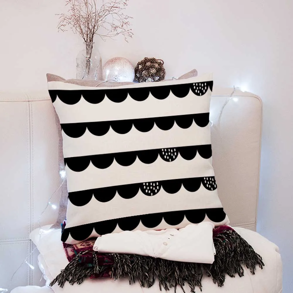 Чехол на подушку с геометрическим узором и волнами, черный, белый, абстрактное искусство, Мягкая Наволочка на подушку, декоративный Сливовый цветок, диван, наволочка, чехол