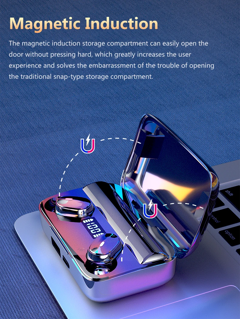 Последнее поколение bluetooth-гарнитур TWS, интеллектуальных зарядных отсеков, магнитных ударов и электрической зарядки для достижения истинной беспроводной непрерывной мощности.