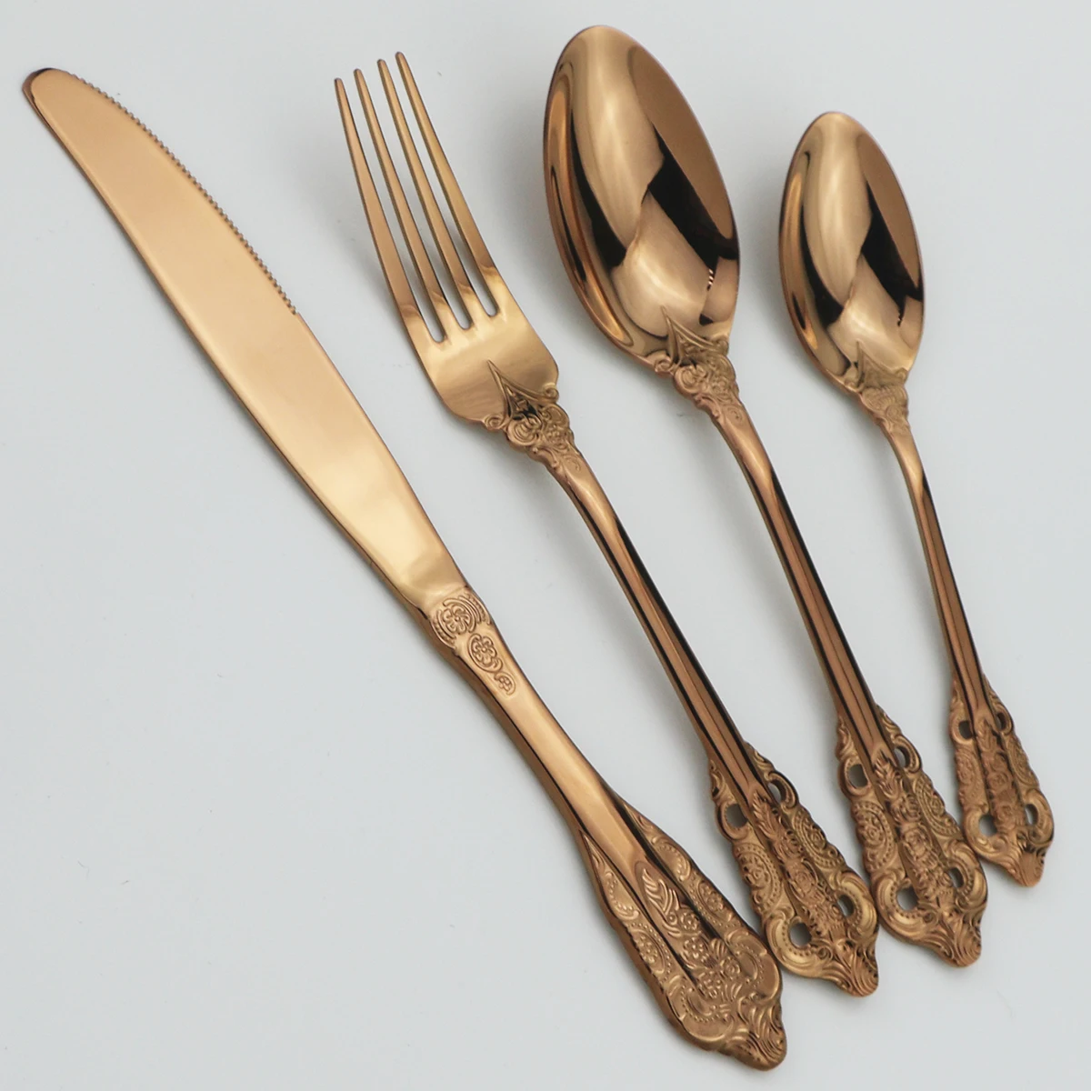 Всего 4 штуки в комплекте, в комплект входит 1 нож для ужина 1 ложка для ужина 1 вилка для ужина 1 чайная ложка.