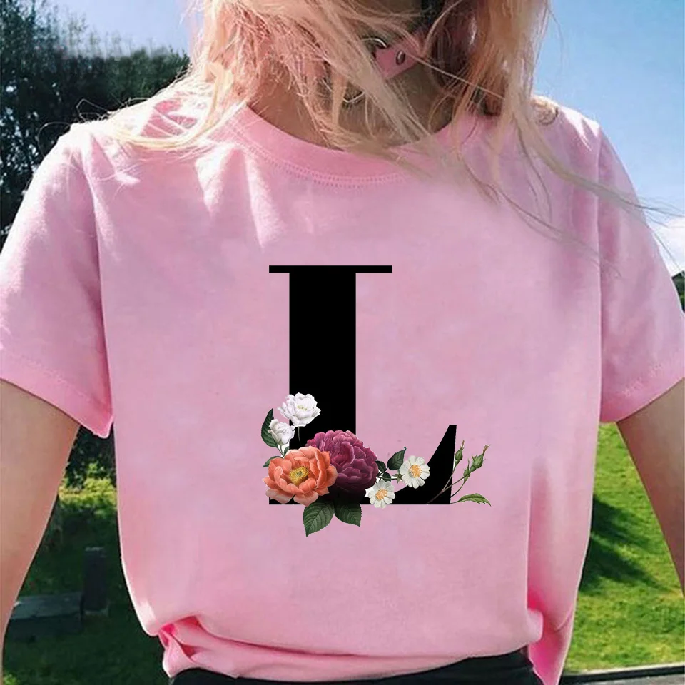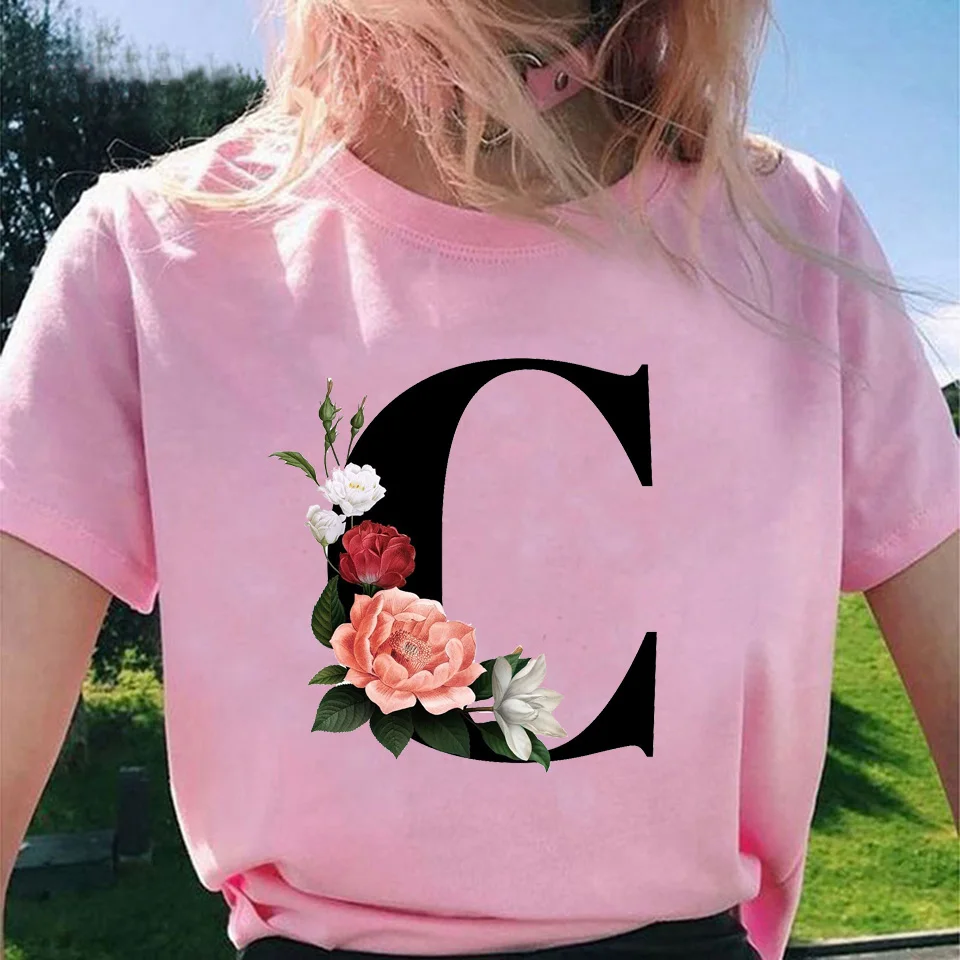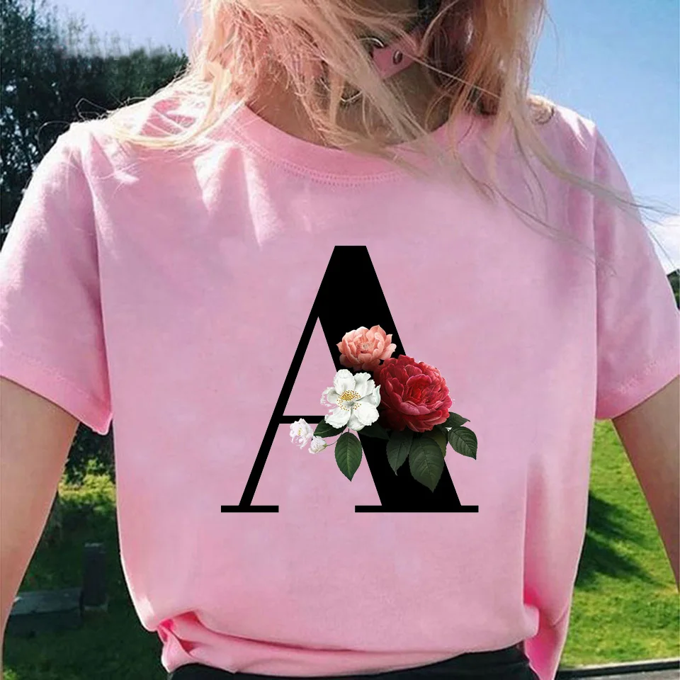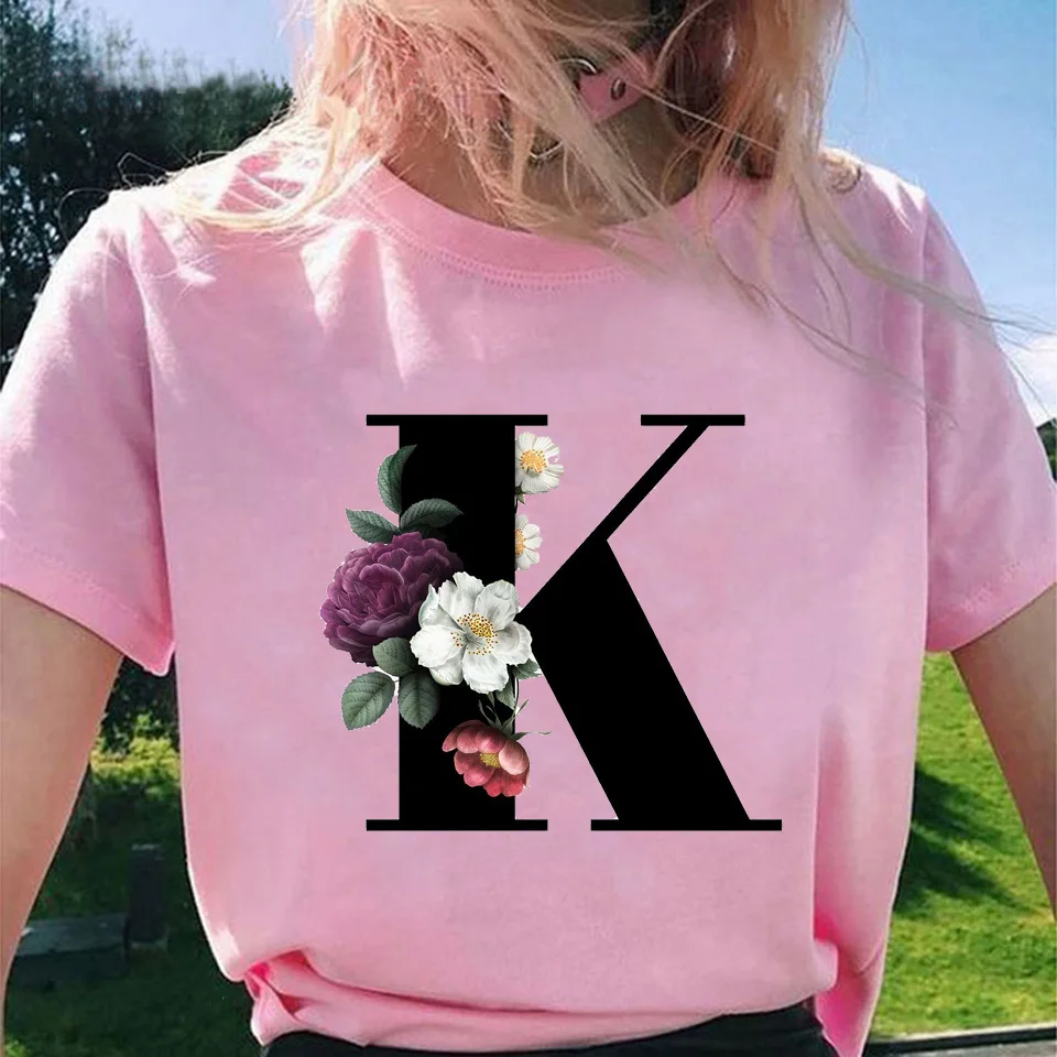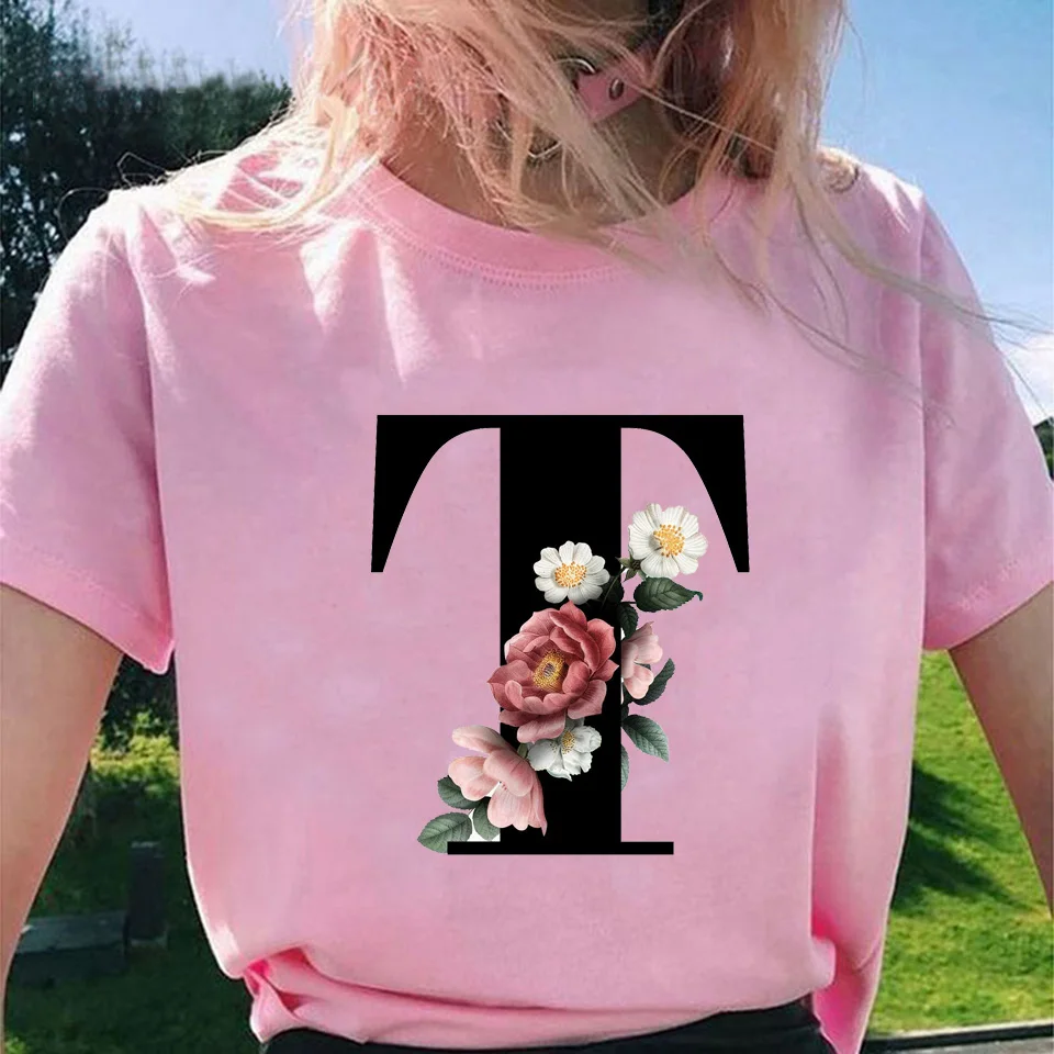 Модные топы для женщин, классические, элегантные, цветочные, 26 букв, принт с буквами, Harajuku, футболка, Ropa Mujer, Kpop, футболки 2020, эстетическая футболка