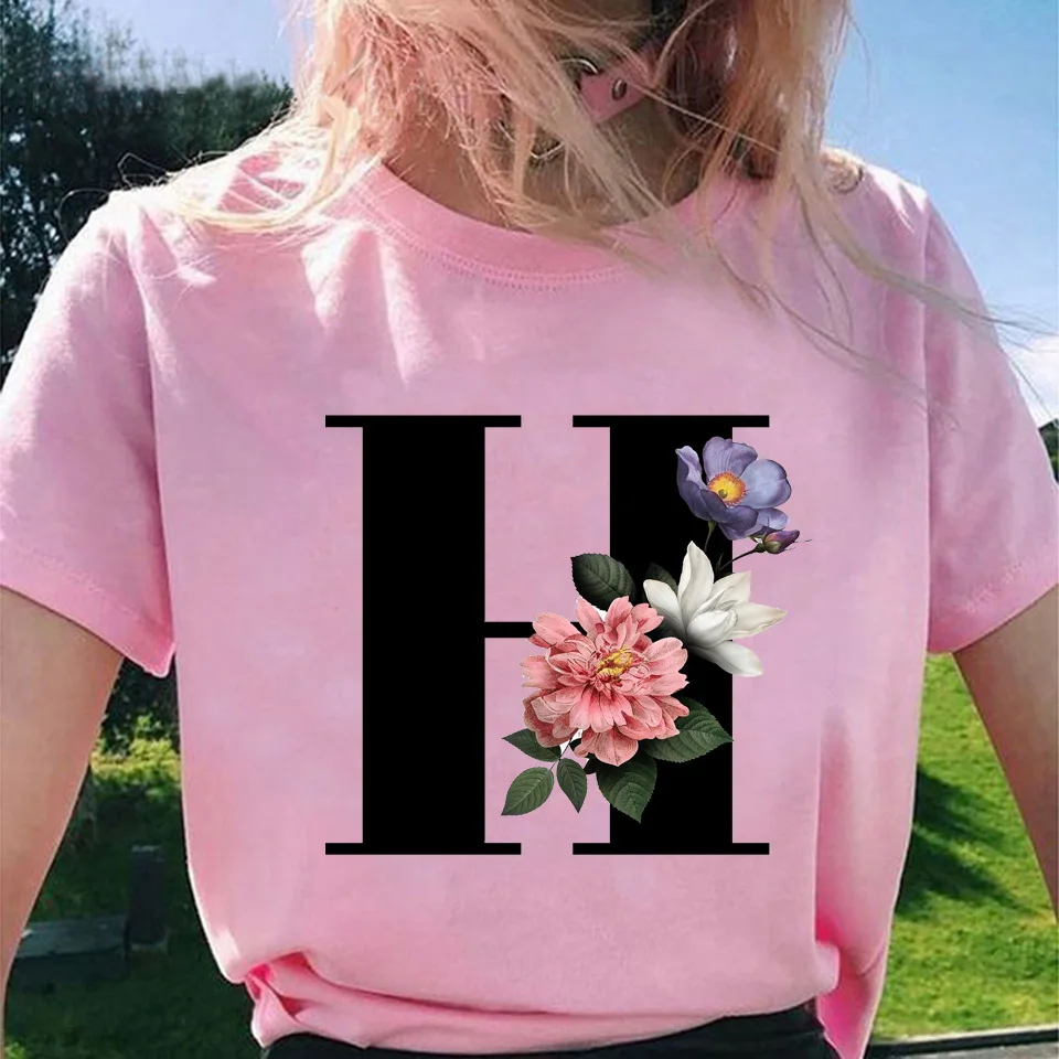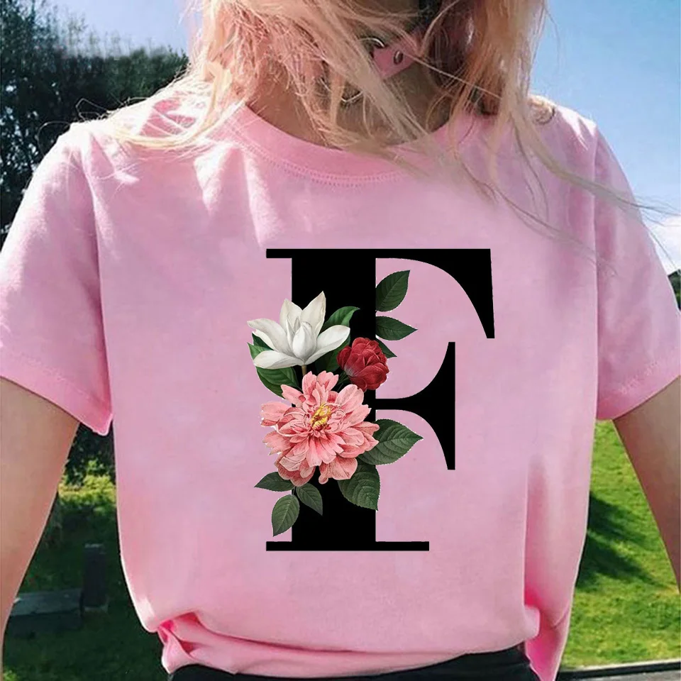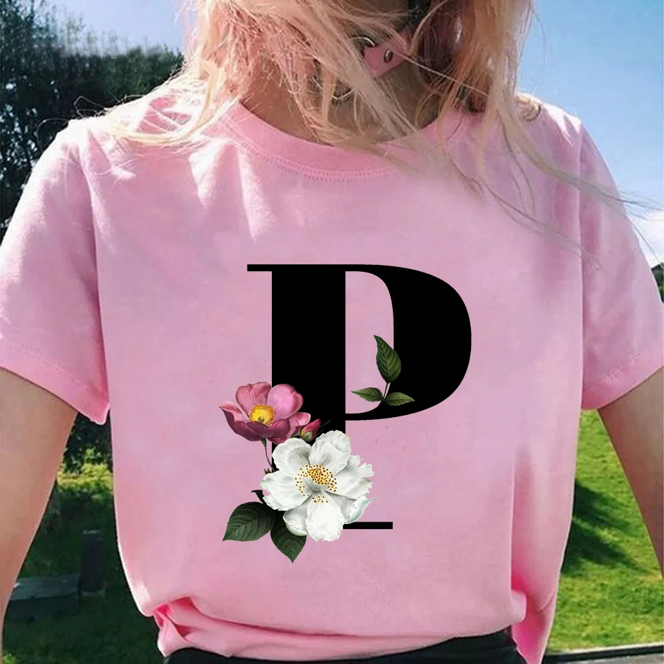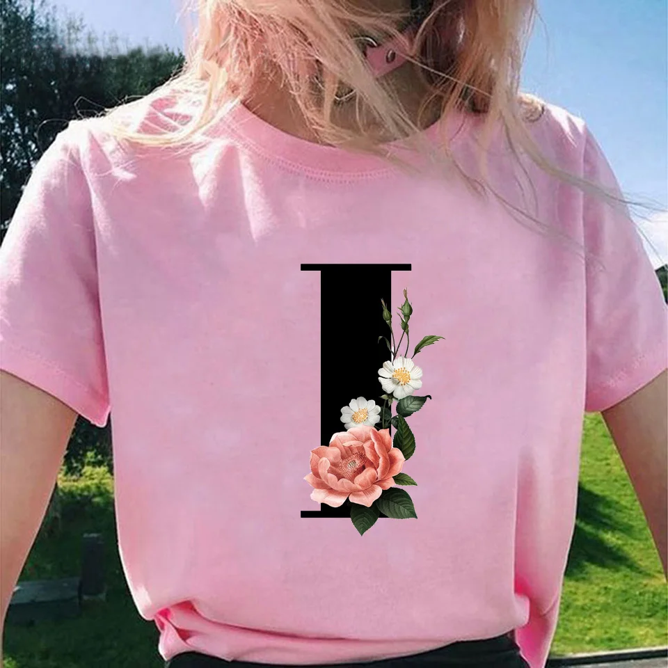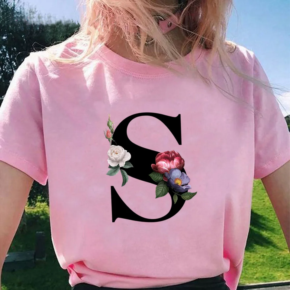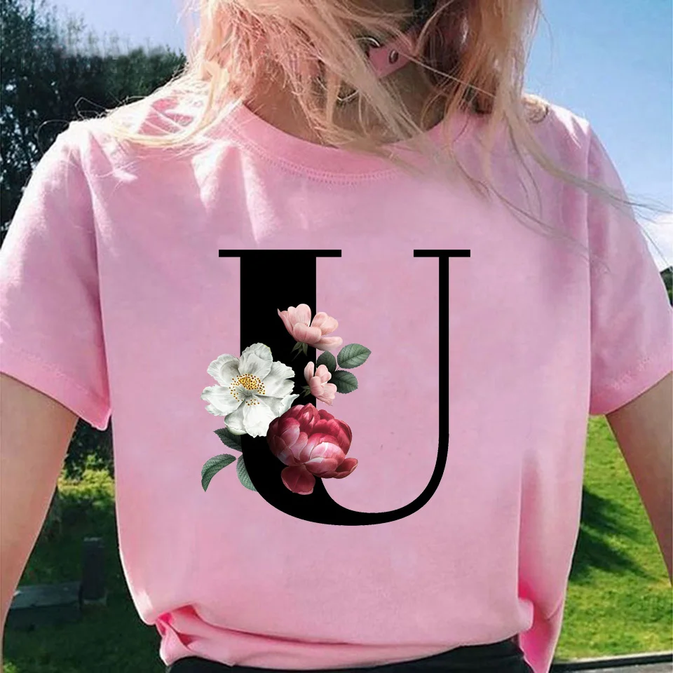 Модные топы для женщин, классические, элегантные, цветочные, 26 букв, принт с буквами, Harajuku, футболка, Ropa Mujer, Kpop, футболки 2020, эстетическая футболка