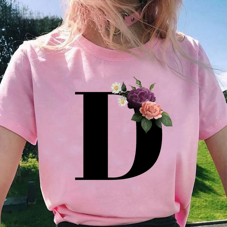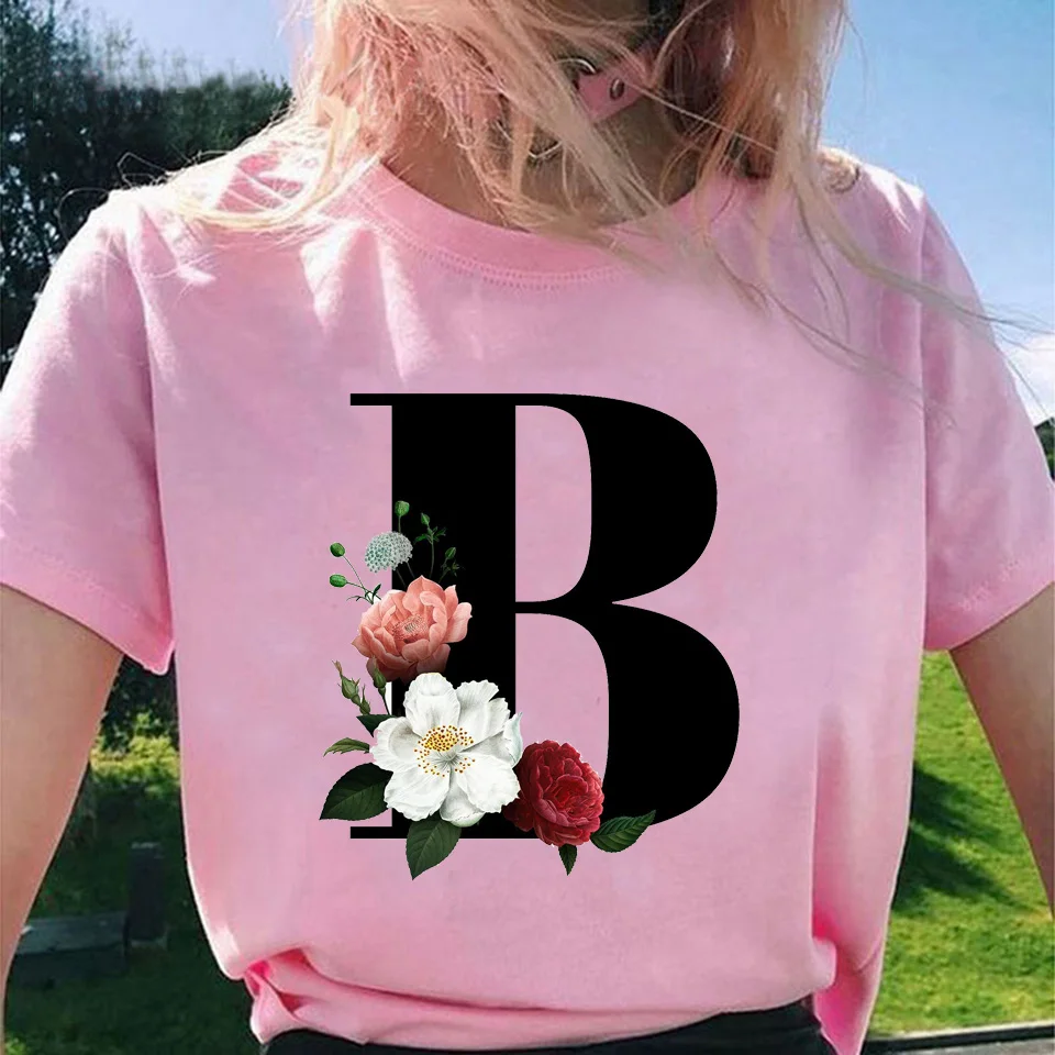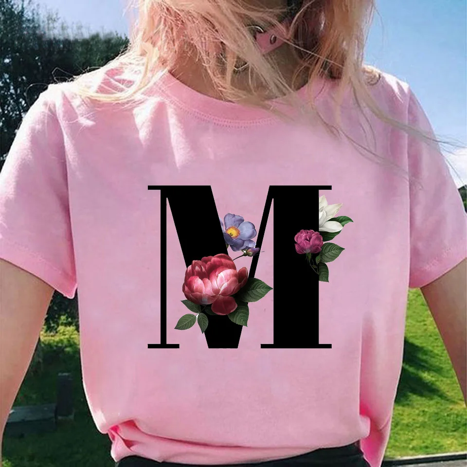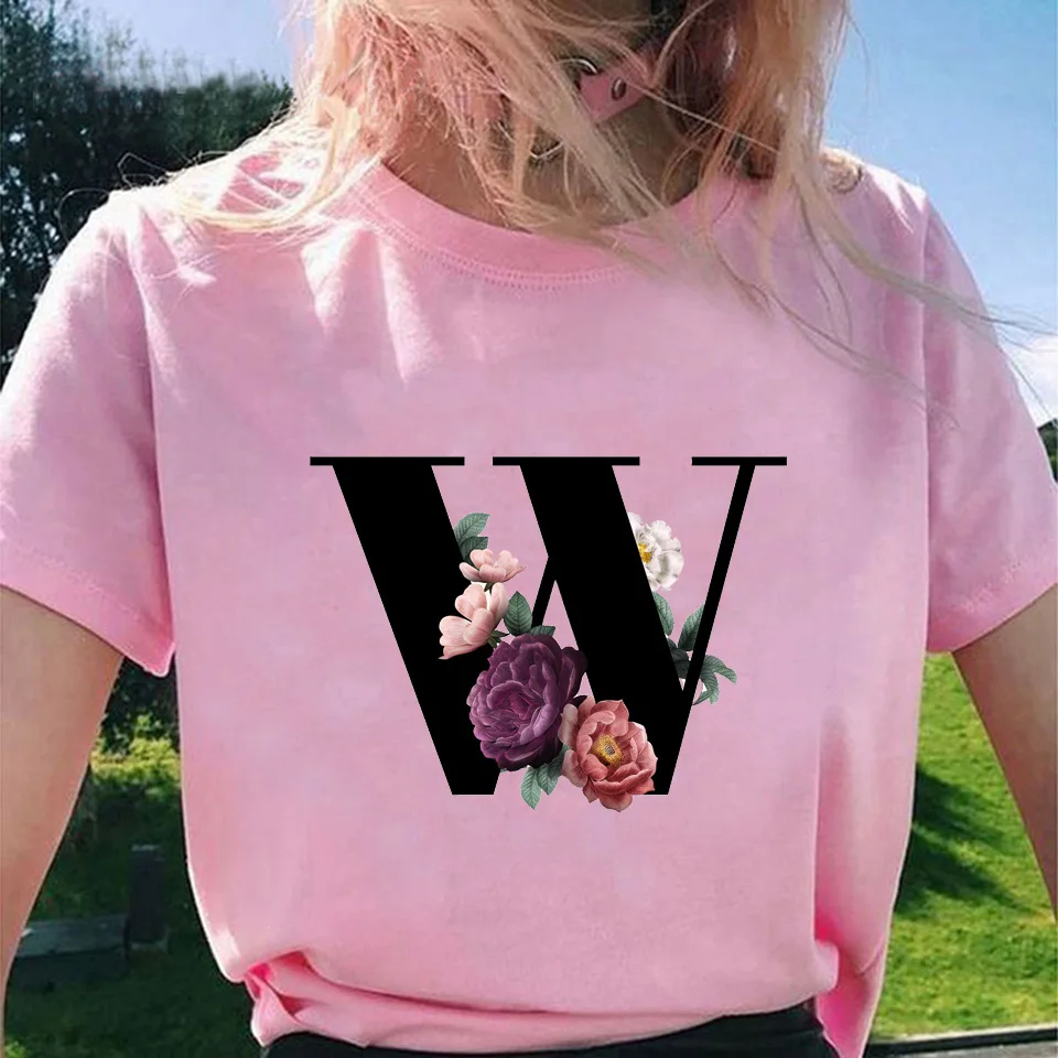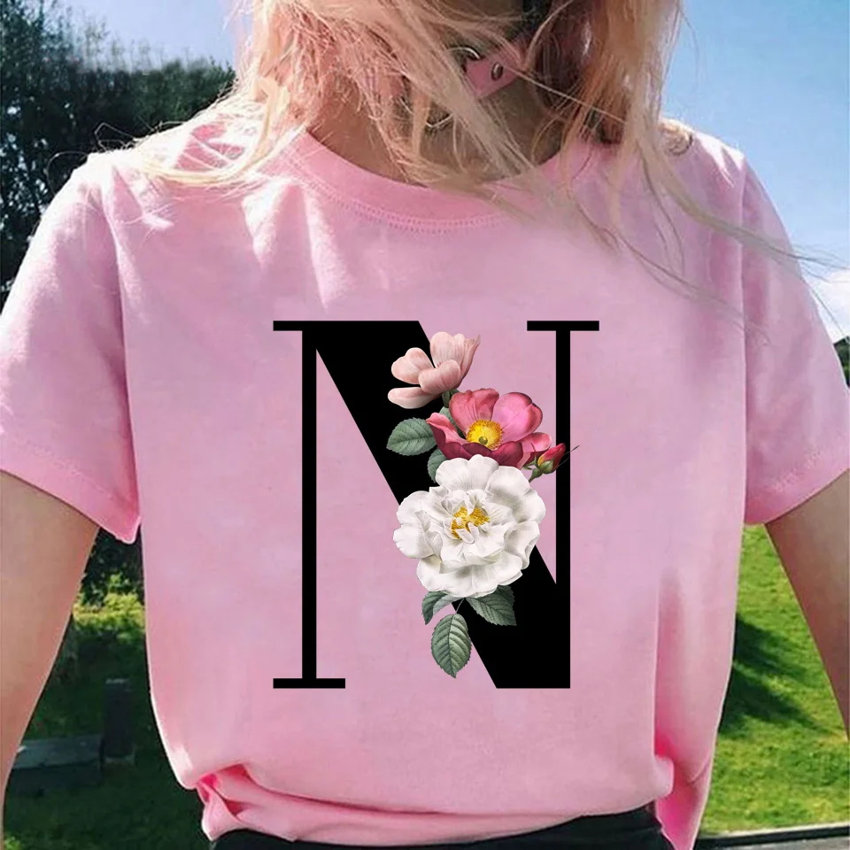 Модные топы для женщин, классические, элегантные, цветочные, 26 букв, принт с буквами, Harajuku, футболка, Ropa Mujer, Kpop, футболки 2020, эстетическая футболка