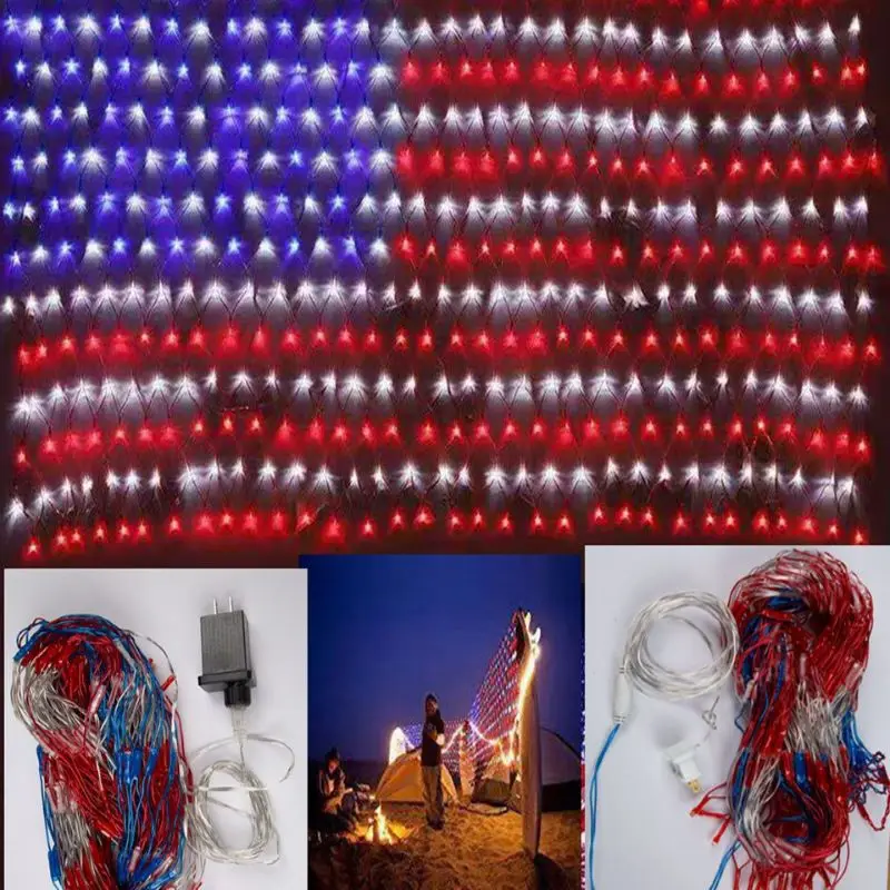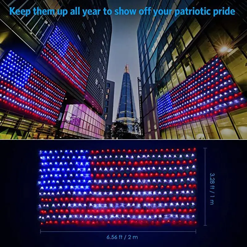 Светодиодный водонепроницаемый светильник для внутреннего двора с американским флагом, 30 В, светодиодный сетчатый светильник с американской вилкой, праздничный декоративный сетчатый светильник, День Независимости