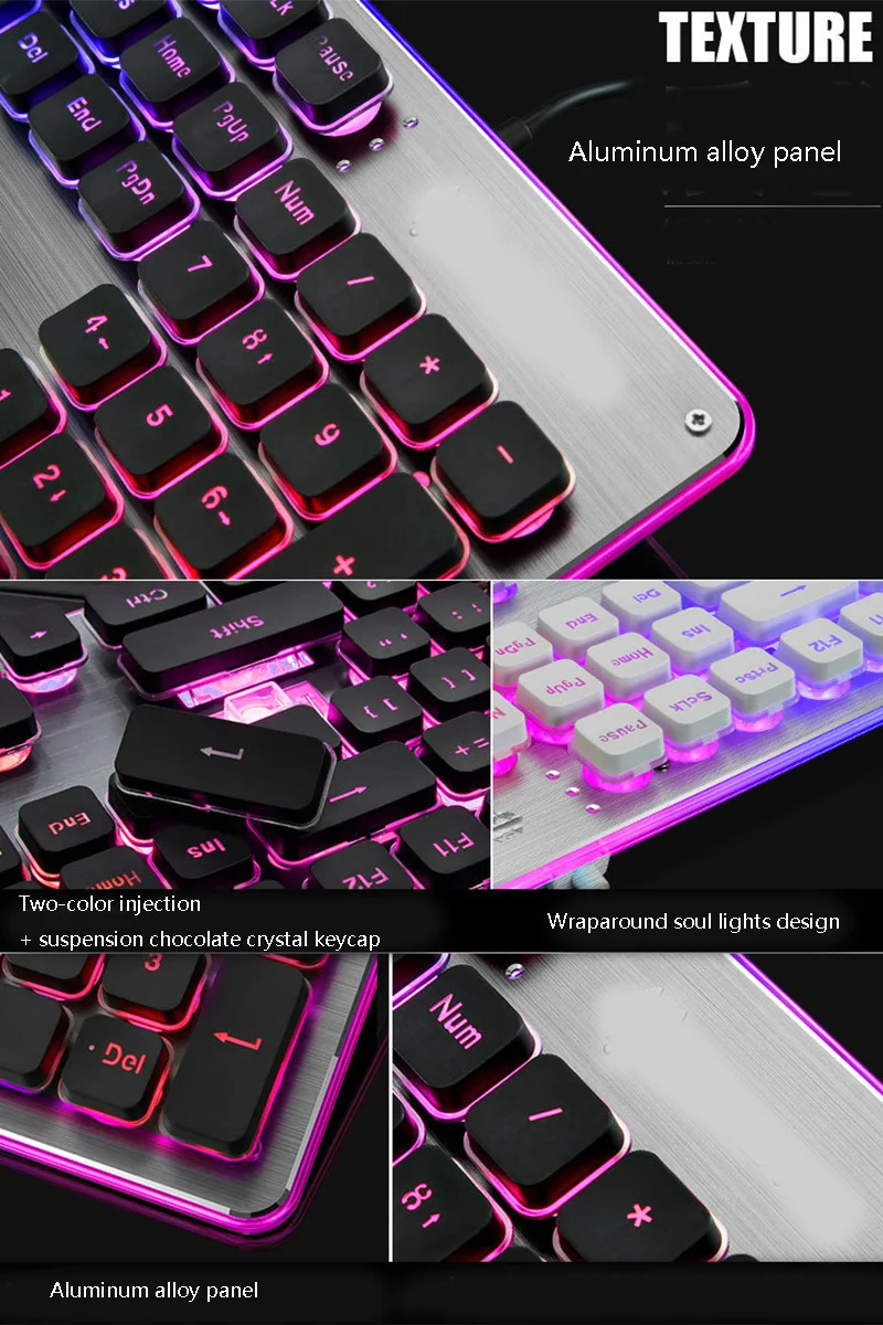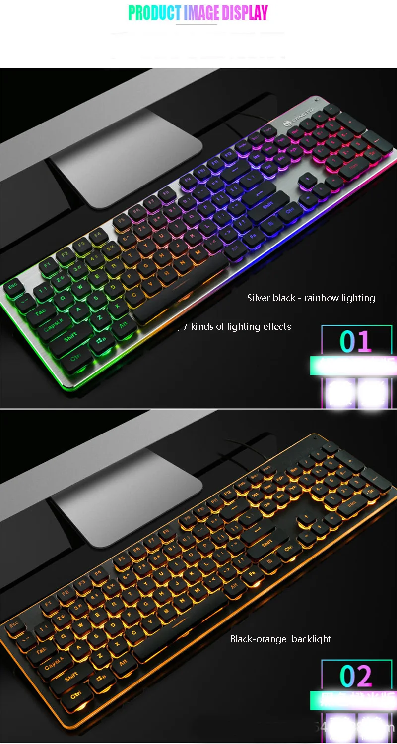 Номер моделиL1Brand NameorunjoTypeWIREDStylewaterproofStyleGamingApplicationDesktopPackageYesInterface TypeUSBLanguageEnglishWrist SupportNoFull Size keyboardYesAxis Body Brand0Keyboard Standard104 KeysOperation StyleMechanicalMeasurement unit100000015Each pack1ItemGaming KeyboardOperation StyleMechanicalApplicable modelsHome, games, office, laptopButton technologyX architectureModeWired USB Keyboard and mouse Combowire length1.6mKey104 KeysMaterialAluminum alloySize43.7*13.3*3.5 cmWeight0.8 kgSystem SupportMAC Windows,WIN7,WIN8,WIN10,MAC,IOS