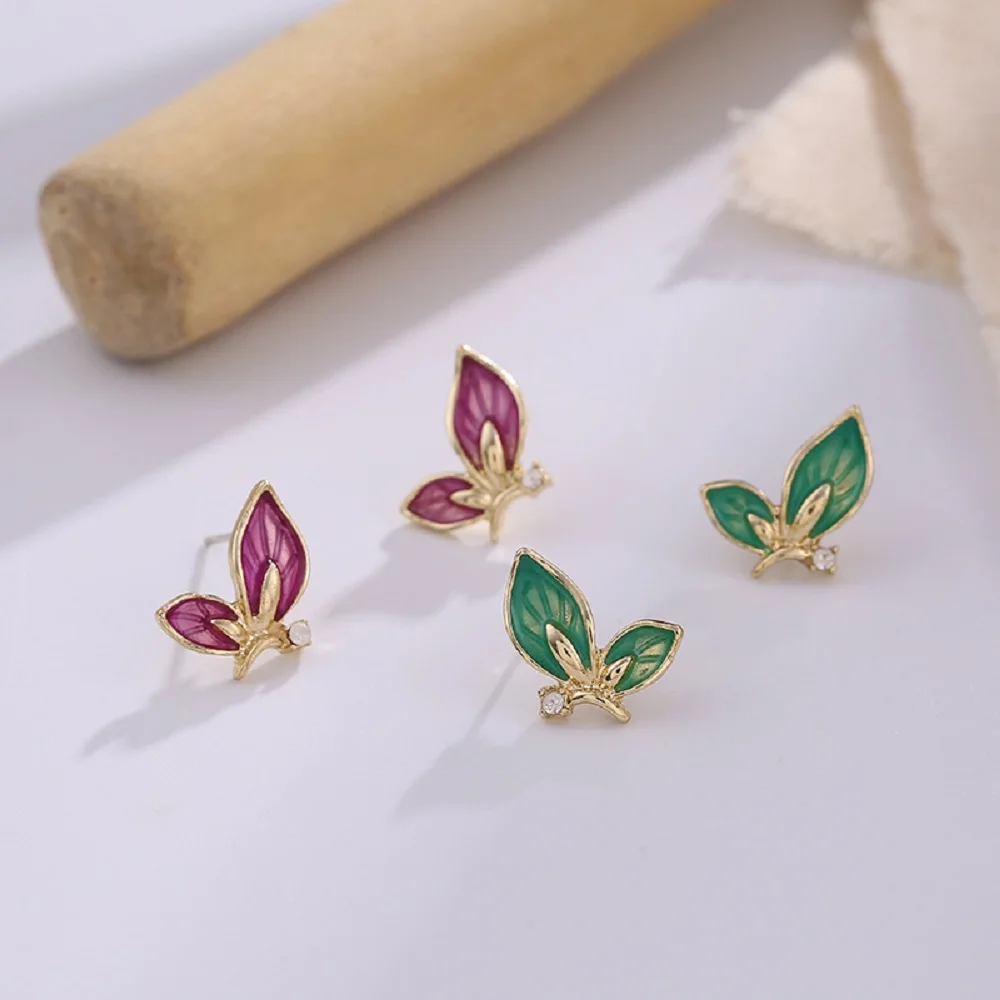 Женские винтажные серьги-гвоздики в виде бабочек с кристаллами-сказками, милые серьги золотого цвета с масляным покрытием, вечерние свадебные ювелирные изделия