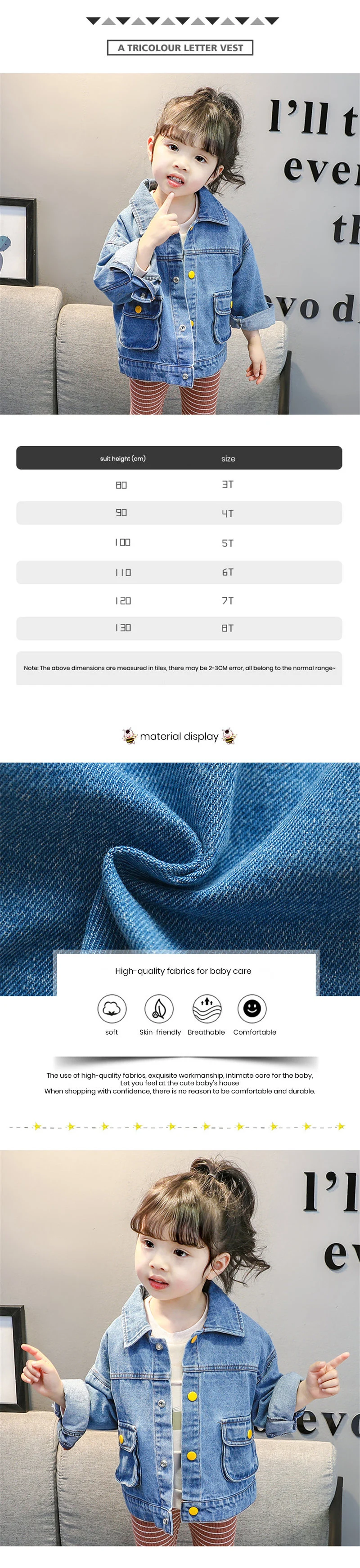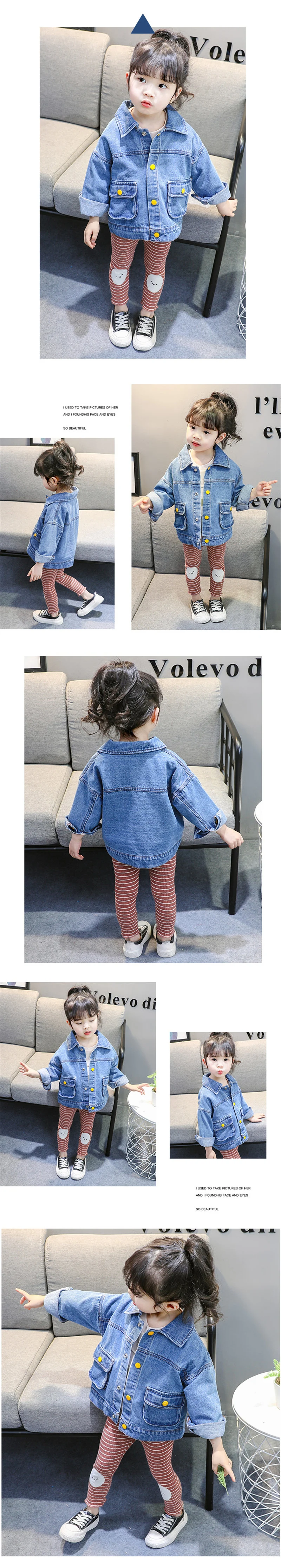 Детская джинсовая куртка для девочек осеннее пальто на кнопках ветровка модная