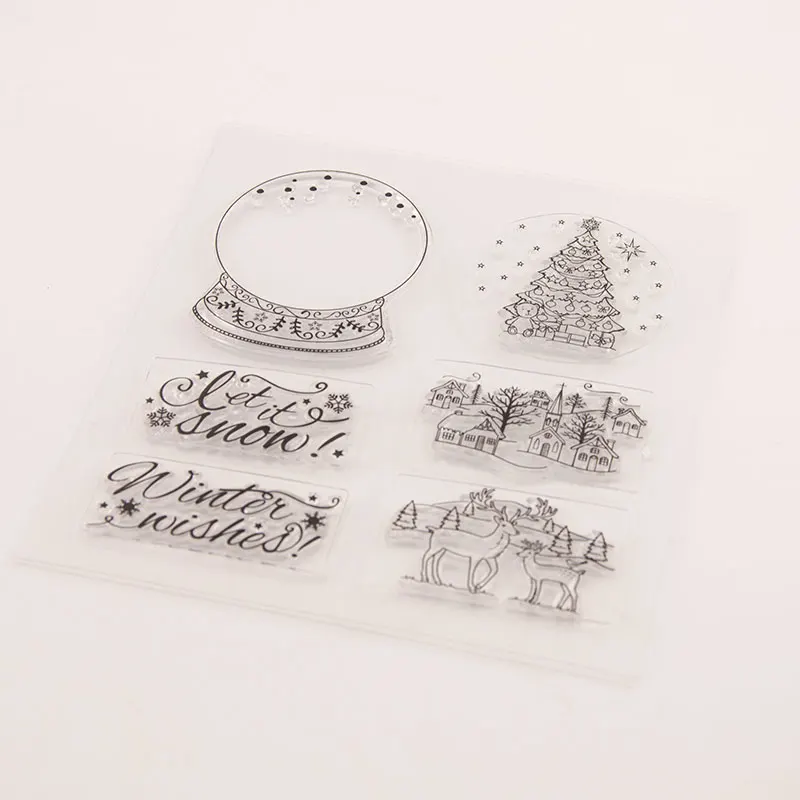 Хрустальный шар, дом оленя, рождественская елка, прозрачные штампы/Силиконовые печатки для «сделай сам», скрапбукинг, фотоальбом/изготовление карт
