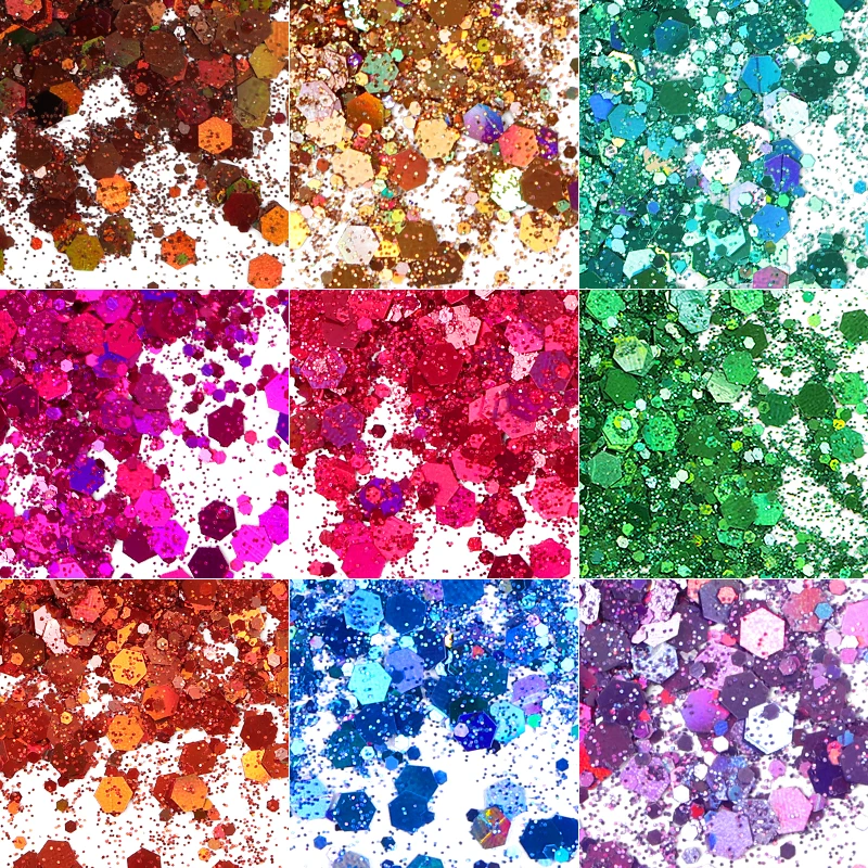50 г/сумка голографический блестящий для ногтей порошок смешанный размер шестигранные хлопья блестки украшения для дизайна ногтей для маникюра