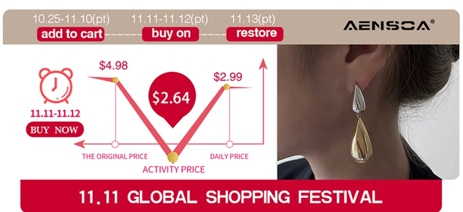 Женские винтажные серьги-подвески AENSOA, золотого цвета Блестящий бар, корейские минималистичные металлические висячие серьги, модные украшения