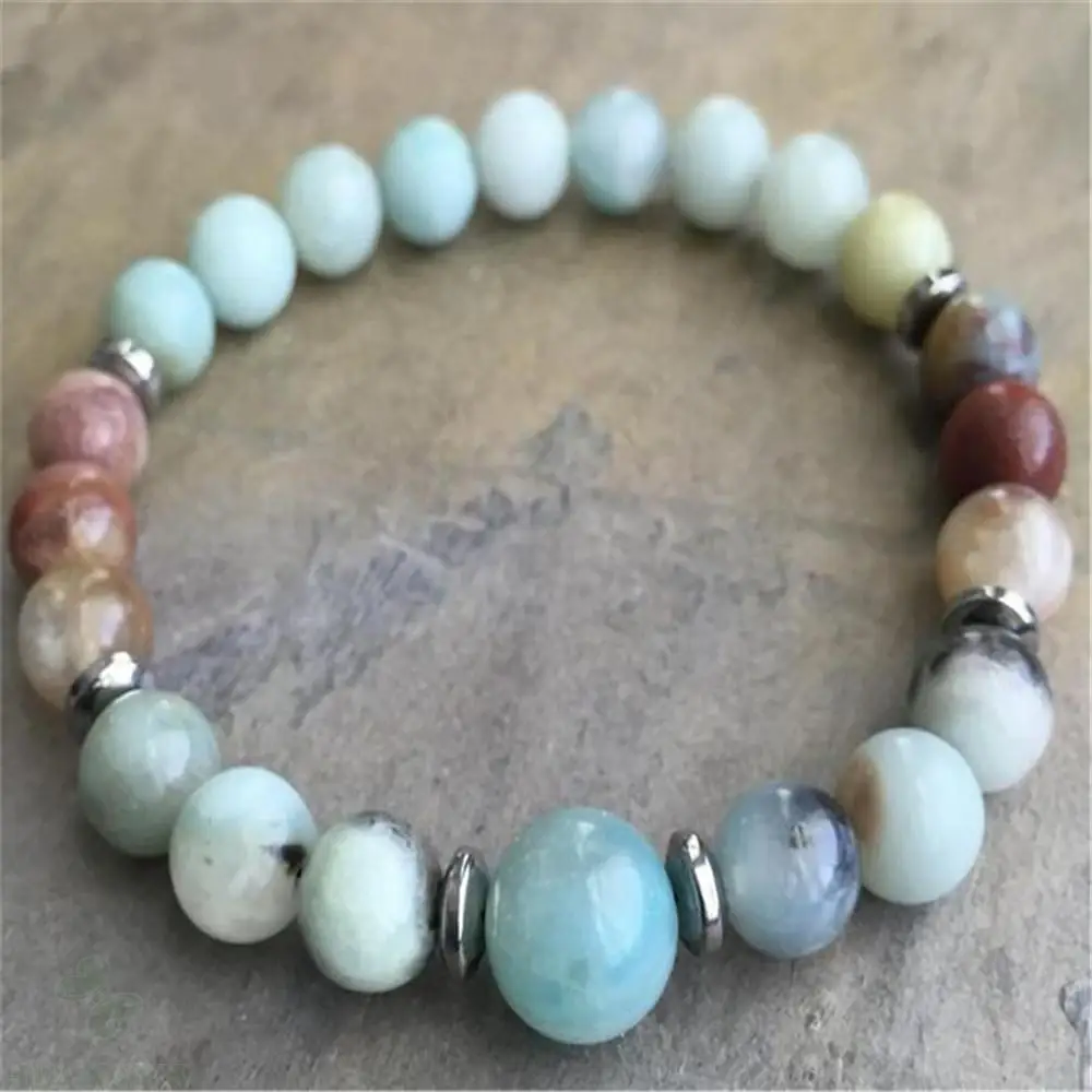 8mm 1 Pair Amazonite Stone Mala Bracelet Yoga Bangle Spiritua Buddhism Tibetan