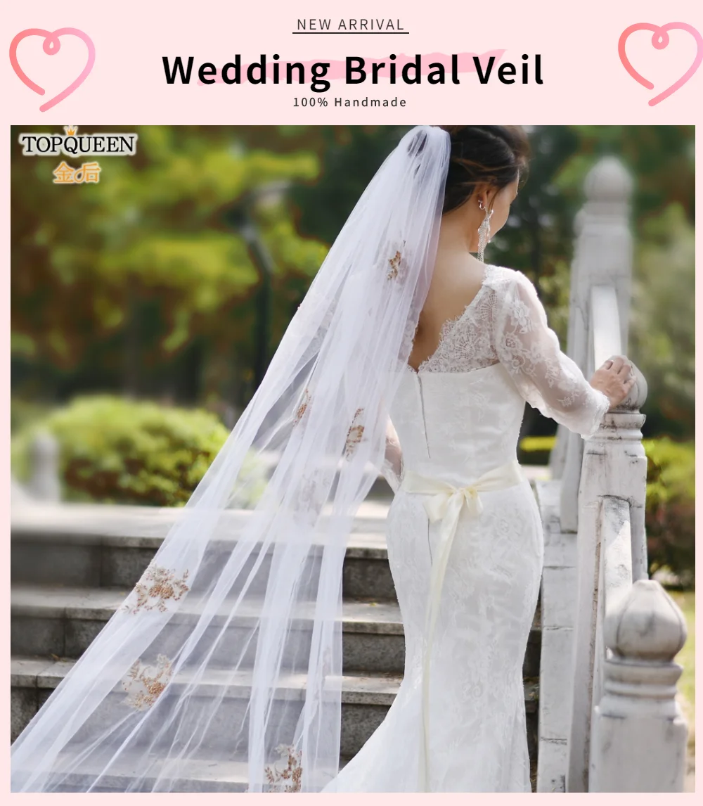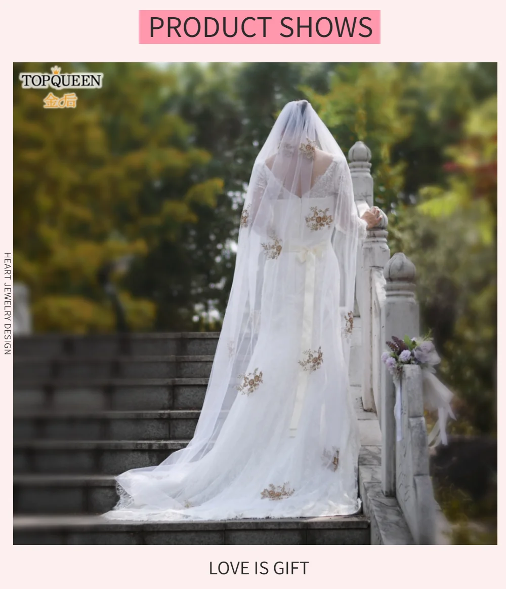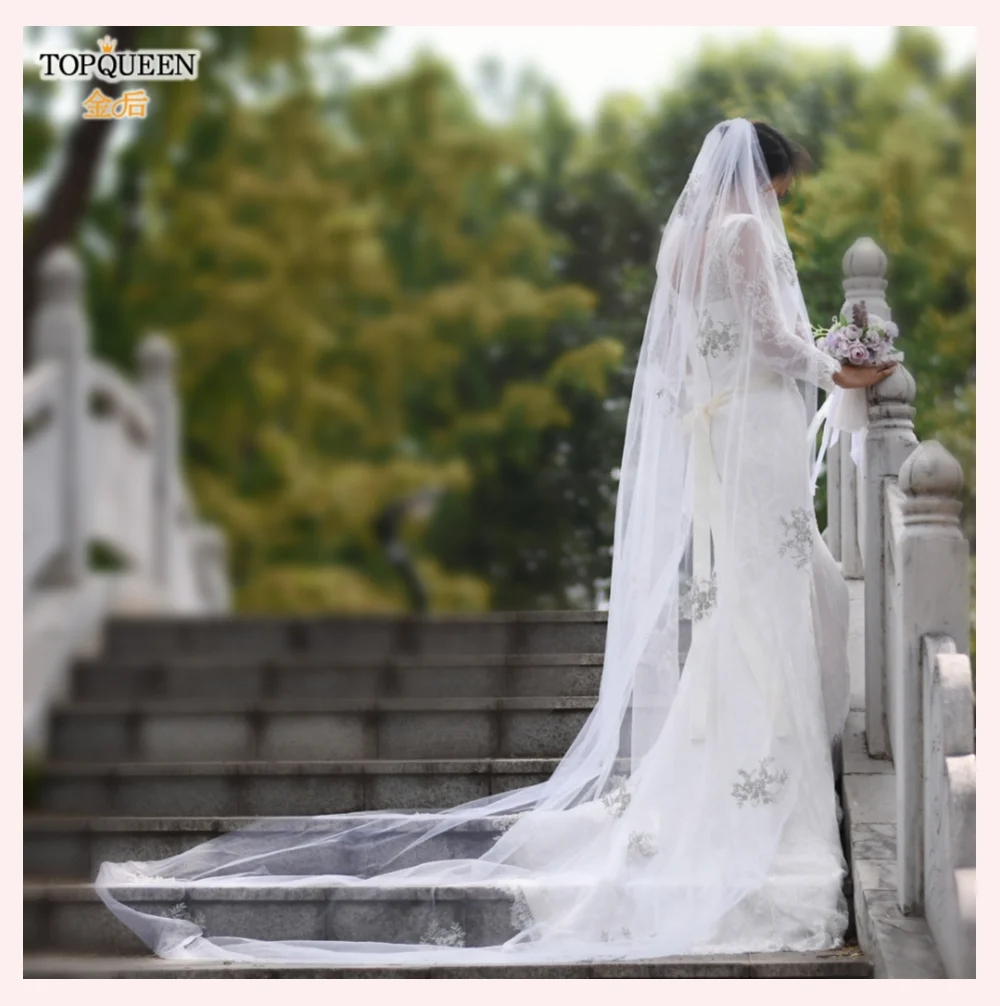 TOPQUEEN V50 белая/слоновая кость Вышивка аппликация Мантилья свадебная вуаль Соборная Фата Свадебные аксессуары большие, ручной работы Цветы