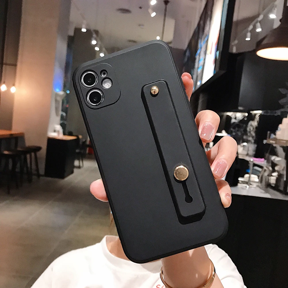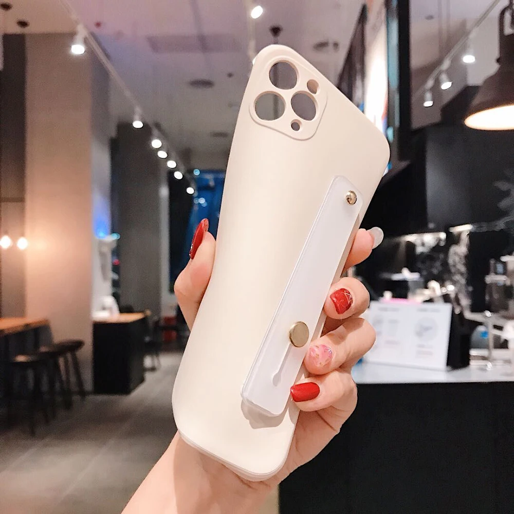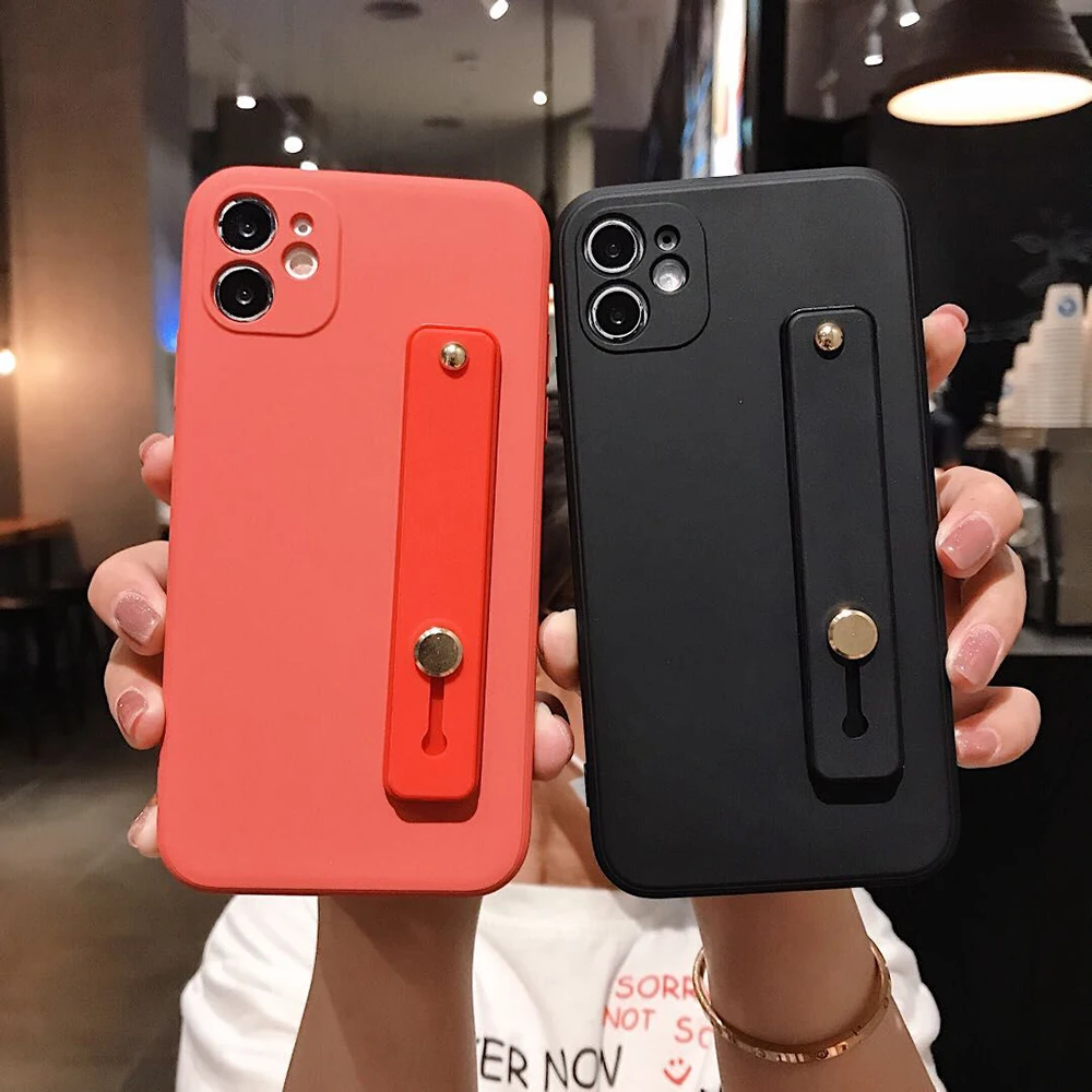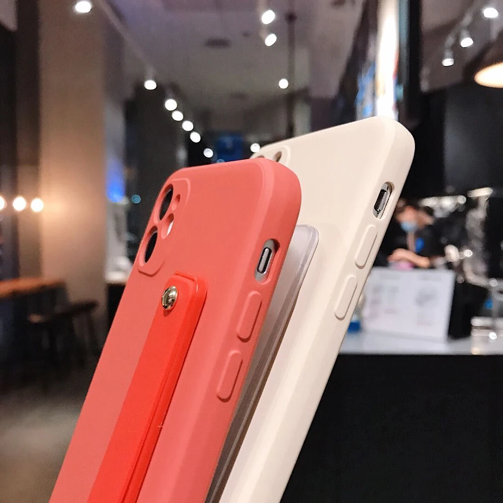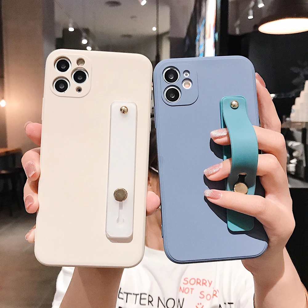 LOVECOM квадратный однотонный чехол для телефона для iPhone 11 Pro Max XR XS Max 7 8 Plus X с ремешком на запястье, мягкая Жидкая силиконовая задняя крышка с подставкой