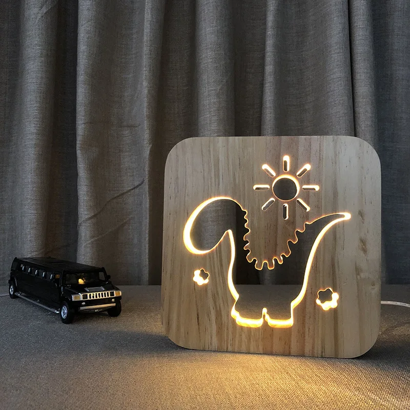 Светодиодный креативный USB ночник, деревянная лампа в виде собачьей лапы, кота, волка, головы животных, подарок для детей, новинка для детской спальни, 3D декоративная настольная лампа