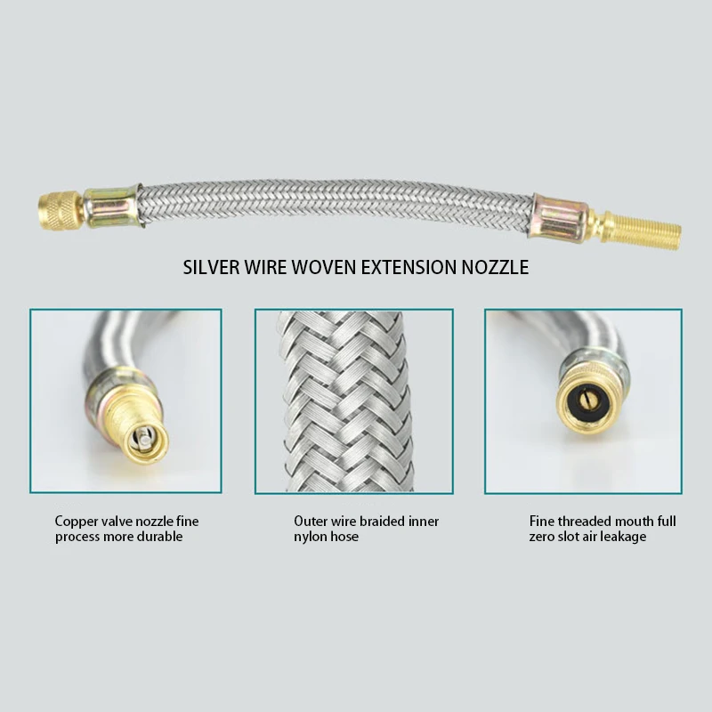 Заполненная газом удлинительная трубка изготовлена из меди и нержавеющей стали, что позволяет сгибать соединительную трубку. Он также имеет Удлинительное сопло из нержавеющей стали и сердечник клапана высокой плотности.