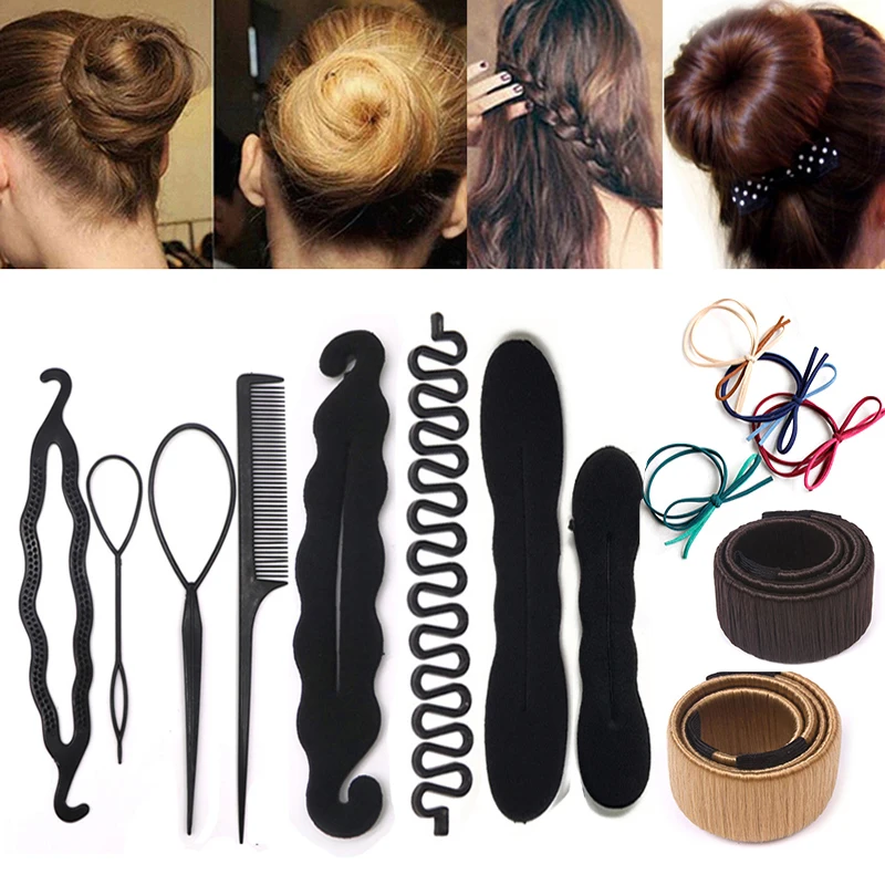Women Hair Twist Styling Clip Stick Bun Maker DIY Hair Braiding Tools Hair Accessories Braider DIY Hairstyle Elastic Hair Bands
