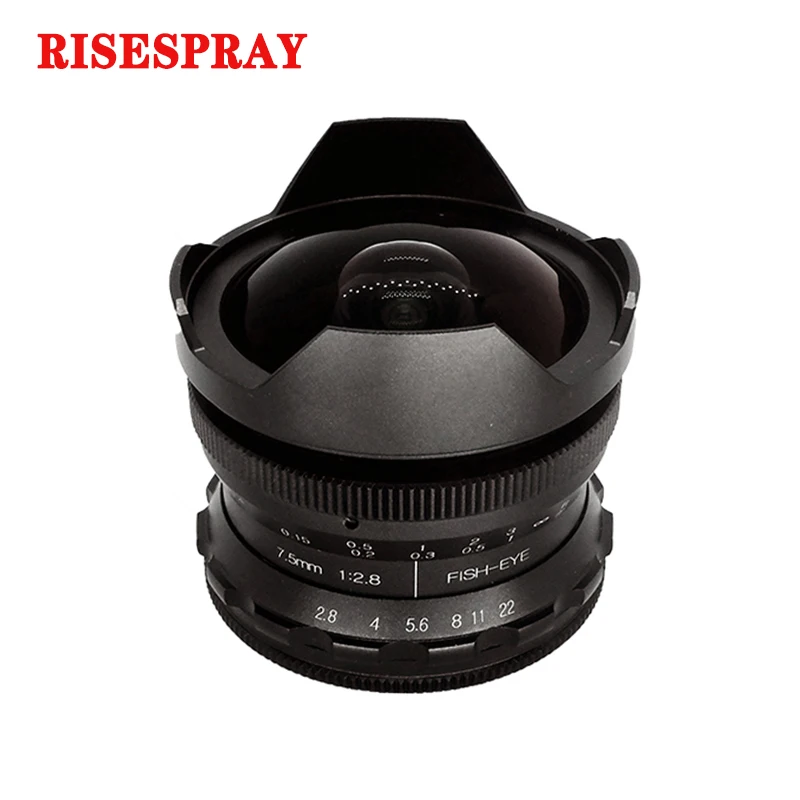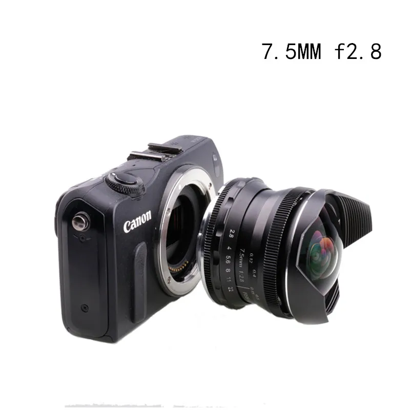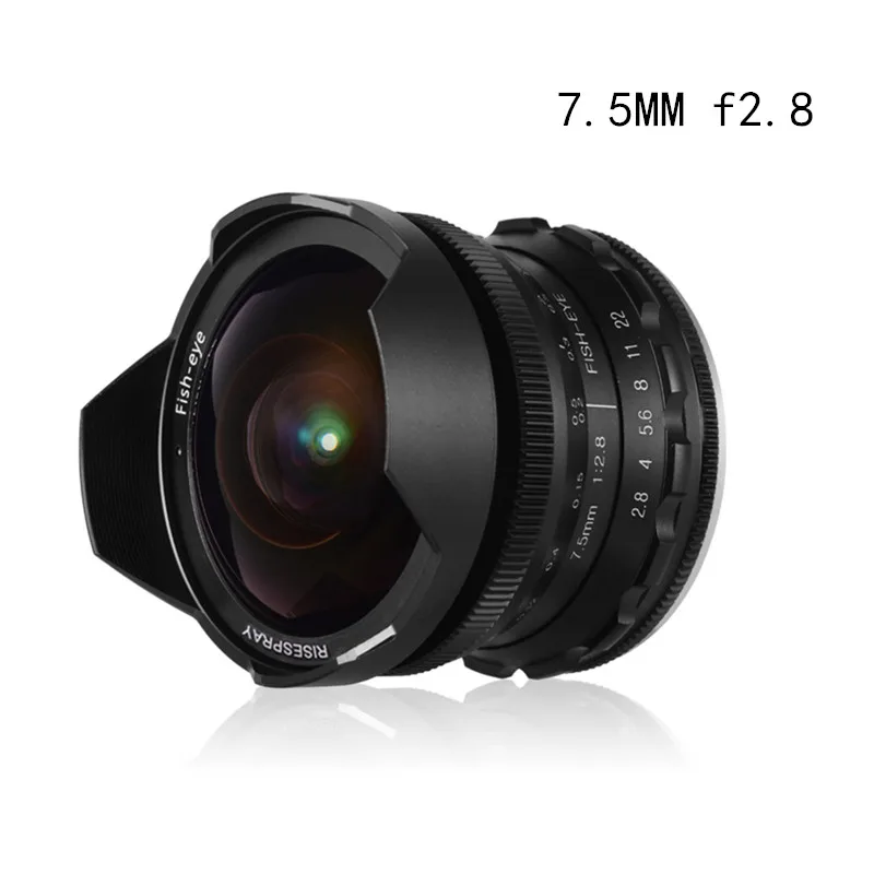 1. Компактный функциональный Объектив: 7,5 мм/f2.8 рыбий глаз имеет максимальную диафрагму F/2,8. Ближайший фокусное расстояние составляет 0,12 м; Широко фокусируется в пределах 180 градусов.
