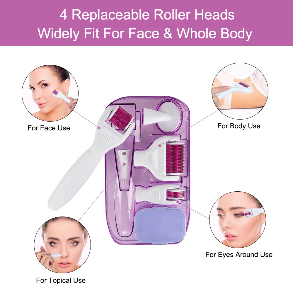 Особенности 1. Крошечные микро иглы для терапии кожи могут способствовать регенерации коллагена и сделать активные ингредиенты лучше проникают в кожу для более эффективного поглощения и улучшения эффекта кожи, безболезненного и быстрого восстановления, без шрамов с шелковистым гладким видом. 2. Интегрированная герметичная посылка может эффективно снизить риск заражения для повышения безопасности и гигиены, а портативный чехол для хранения удерживает все ролики derma и помогает предотвратить попадание пыли или грязи в машину, чтобы оставаться стерильными и чистыми, идеально подходит для личного домашнего использования. 3,6 В 1 Дерма роликовая система содержит 4 различных сменная спица съемными роликовыми насадками к костюму для вашего лица и всего тела, 1 Силиконовая головка щетки обеспечивает нежное и эффективное очищение кожи перед обработкой кожи и 1 дезинфекционный умывальник для стерилизации роликовой головки спиртом мгновенно. 4. Ультра-острые наконечники для игл легко проникают в кожу и эргономичная обтекаемая ручка с противоскользящим дизайном может обеспечить удобные и безопасные ручки, крепко держать и уменьшить случайное скольжение руки. Технические характеристики Цвет: фиолетовый и белый Тип роликовых головок: 1200 штифтов (для использования на теле), 720 штифтов (для лица), 300 штифтов (для использования вокруг глаз), 12 штифтов (для местного использования) Как Применение: 1. Затяните или ослабьте головку, поворачивая. 2. Замочите Ролик в изопропиловом альхоле в течение 5-8 минут. 3. Свернуть вперед и назад 4-5 раз в каждом направлении по горизонтали. 4. Нанесите необходимое питание на кожу и обратите внимание на воспаление кожи. Внимание: -Только для личного использования, не делитесь с другими. -Кожу с раной следует избегать использования этого ролика. -Будьте осторожны, если у вас аллергия на металл. -Раздражающая Косметика запрещена перед восстановлением кожи. -Пожалуйста, храните товар в недоступном для детей месте. Посылка включает в себя: 1*12 игл Derma штамп 1*300 игл роликовая головка 1*720 иглы роликовая головка 1*1200 игольчатая роликовая головка 1 * силиконовая щетка 1 * дезинфекции бассейна 1 * хранения Чехол