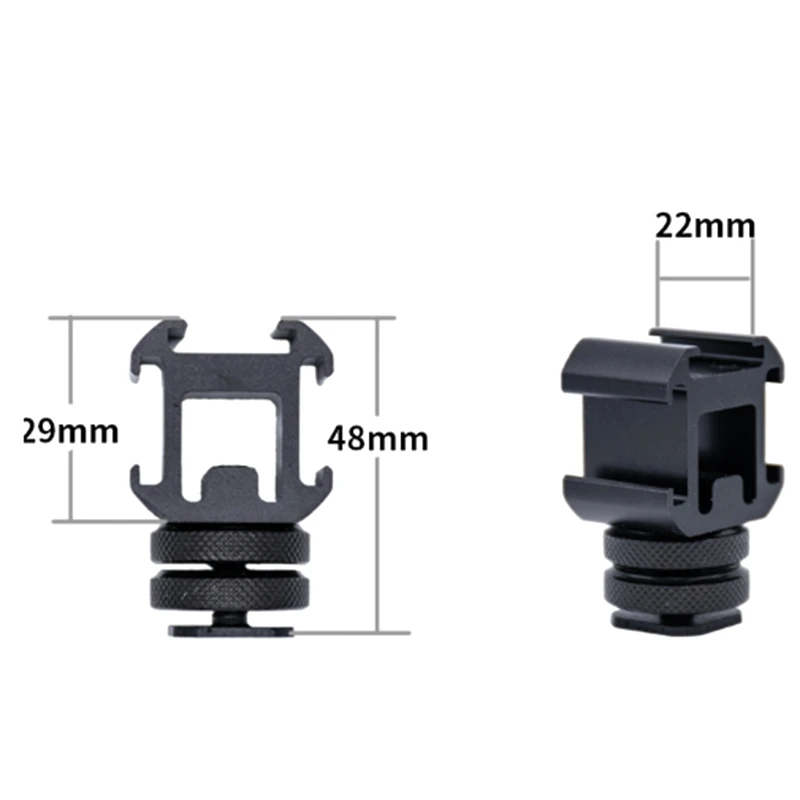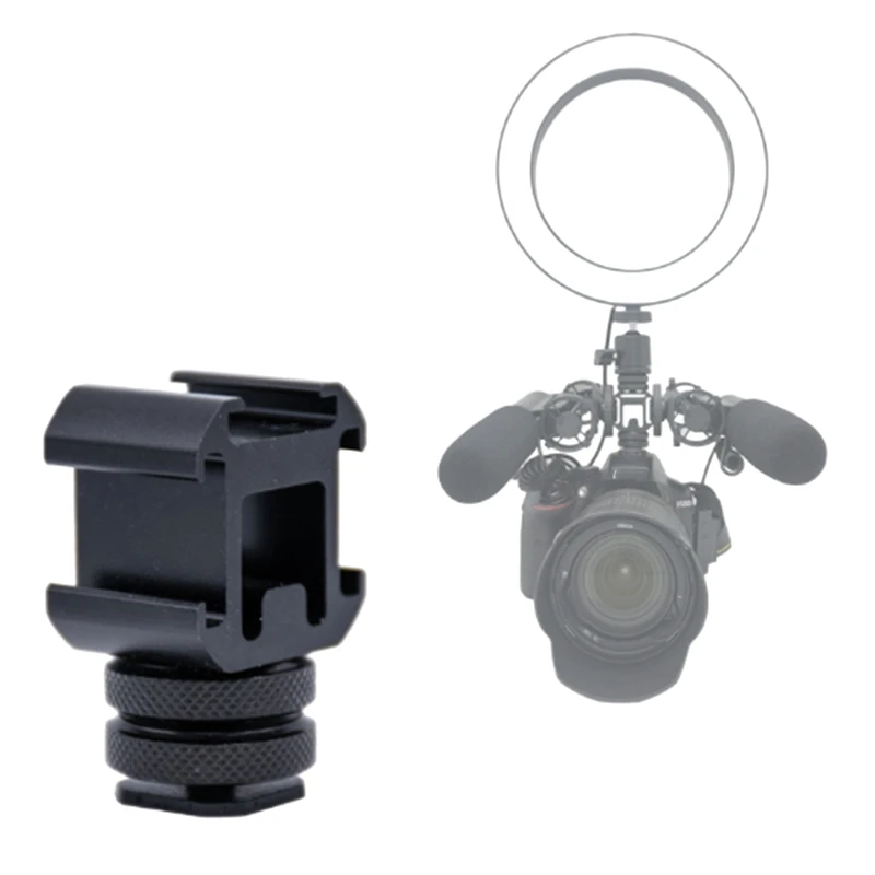 Установка с тремя насадками для горячего башмака позволяет добавлять различные устройства по желанию, такие как микрофоны, заполняющие огни, небольшие устройства для увеличения неограниченного заряда.