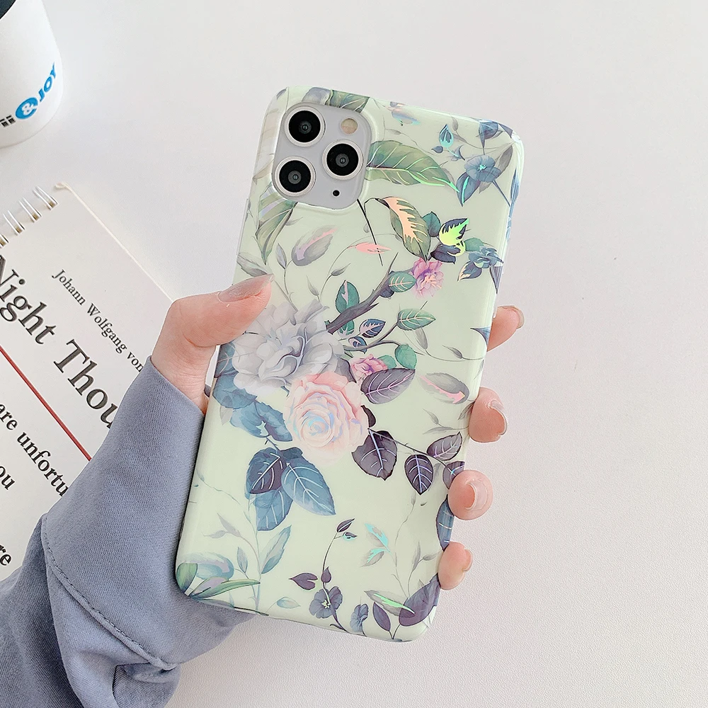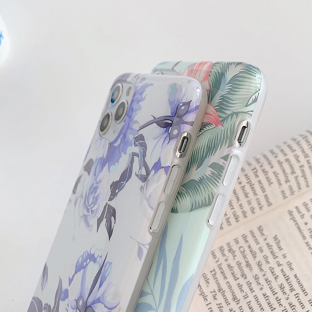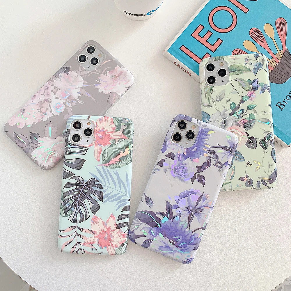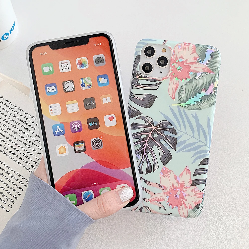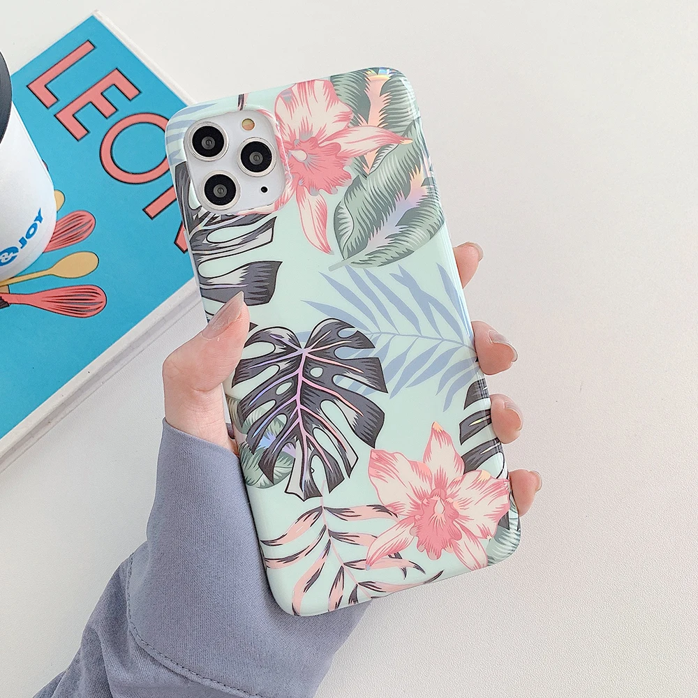 LOVECOM Laser Vintage Flower Leaf Phone Case For iPhone 12 11 Pro Max XR XS Max 7 8 Plus X SE 2020 Banana Leaf Soft Back Cover