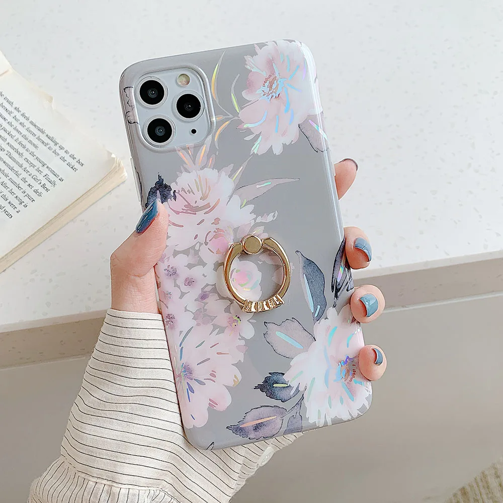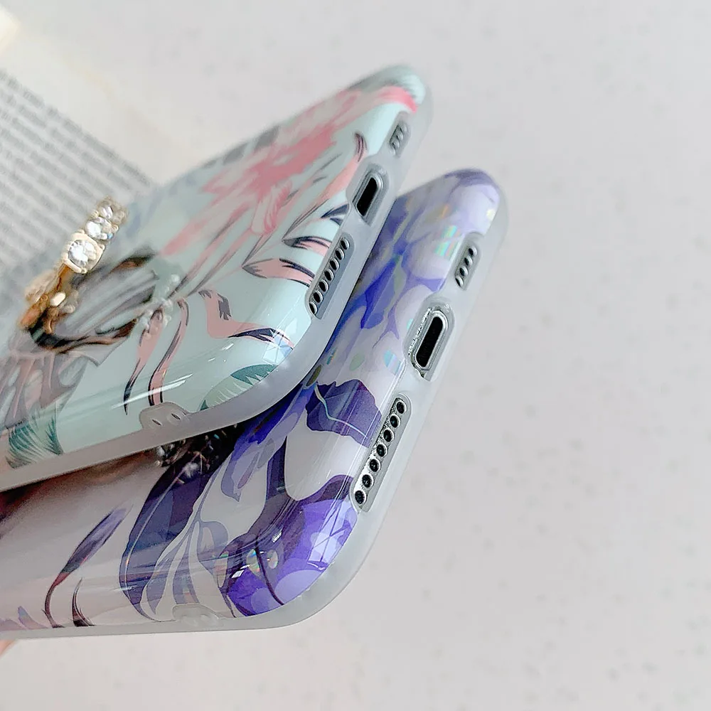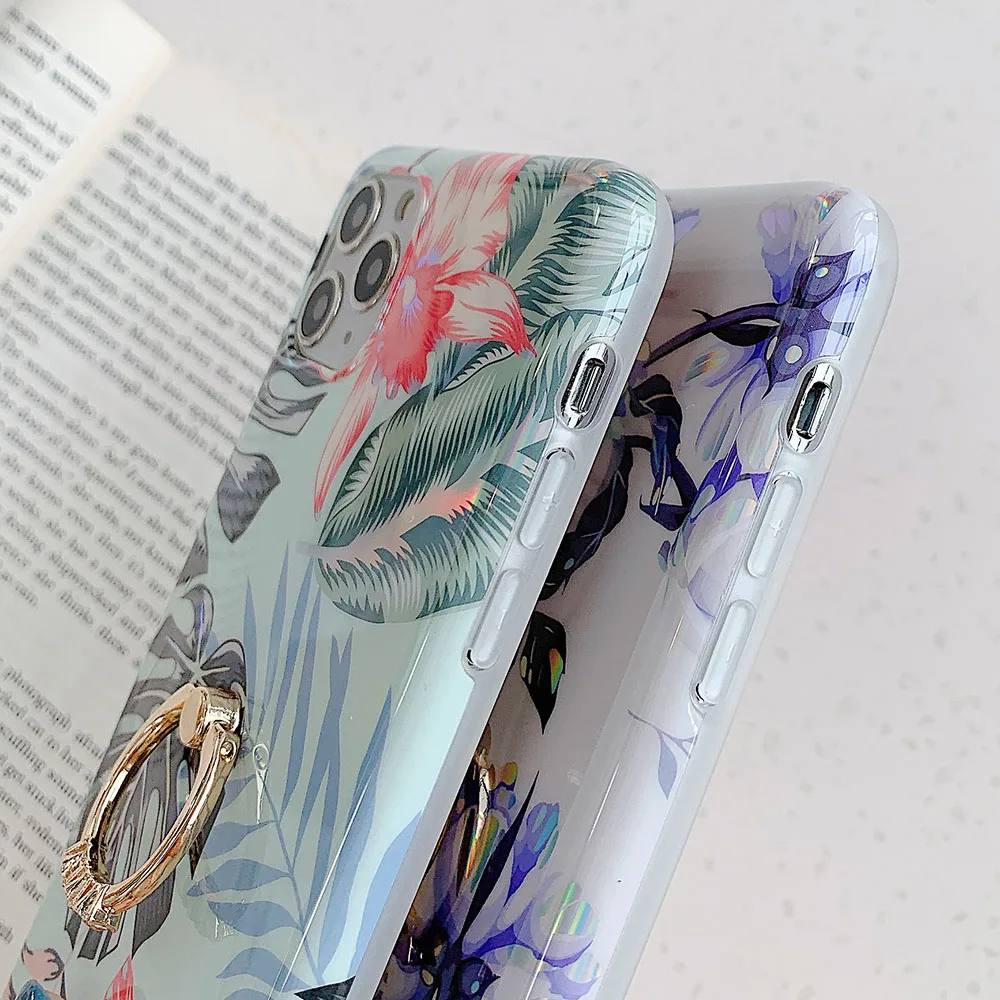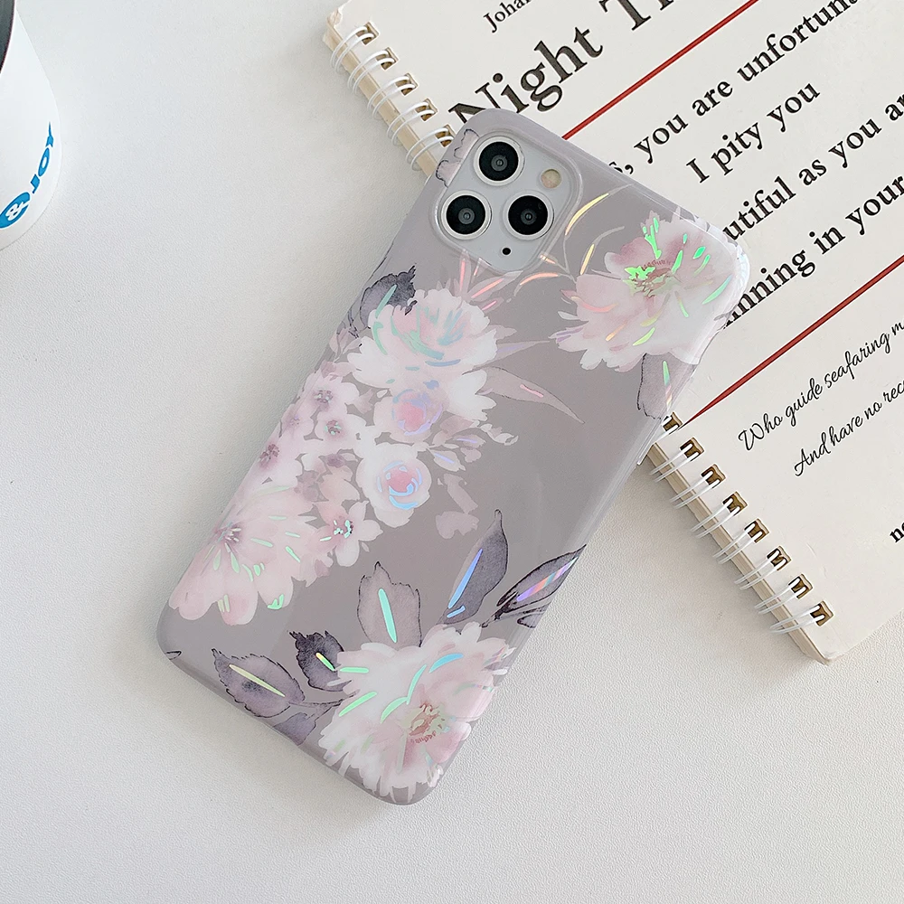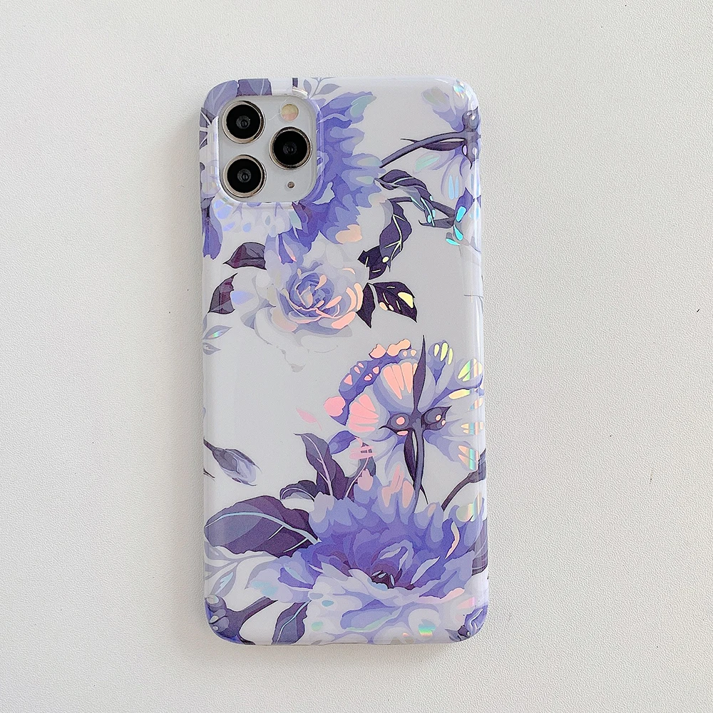 LOVECOM Laser Vintage Flower Leaf Phone Case For iPhone 12 11 Pro Max XR XS Max 7 8 Plus X SE 2020 Banana Leaf Soft Back Cover