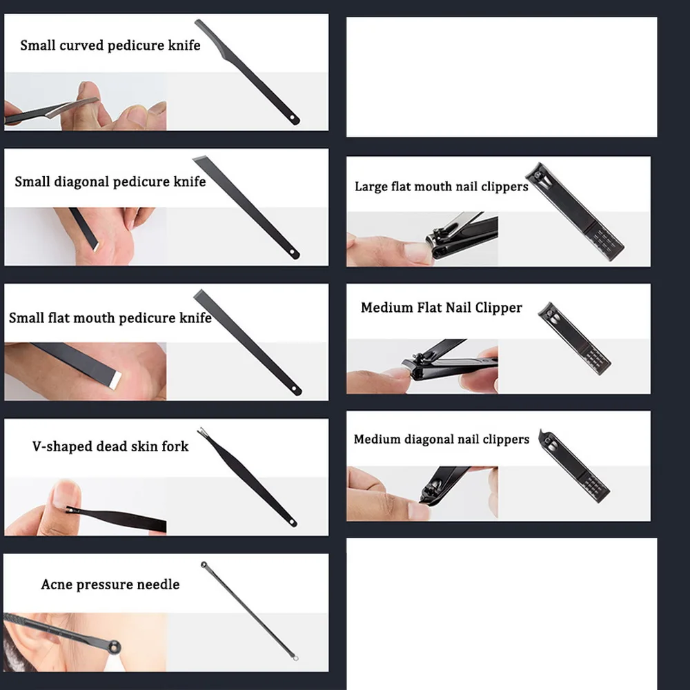 <Портативность: маникюрный педикюрный набор поставляется с футляром для хранения, чтобы защитить острые инструменты и легко носить с собой, идеально подходит для путешествий.