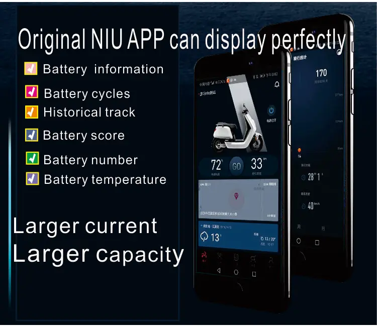 Этот продукт подходит для NIU 16-20S тройных/литиевых железных батарей. Все аксессуары, соединители и жгуты проводов, включая размеры, отличаются от оригинальных NIU BMS и должны быть повторно подключены (если вам нужны аксессуары для полного соответствия оригиналу, пожалуйста, свяжитесь со мной, чтобы выбрать другой продукт модели), наши BMS не должны взломать модуль, NIU BMS может быть идеально заменен, особенно подходит для нового аккумулятора NIU rebuilt.