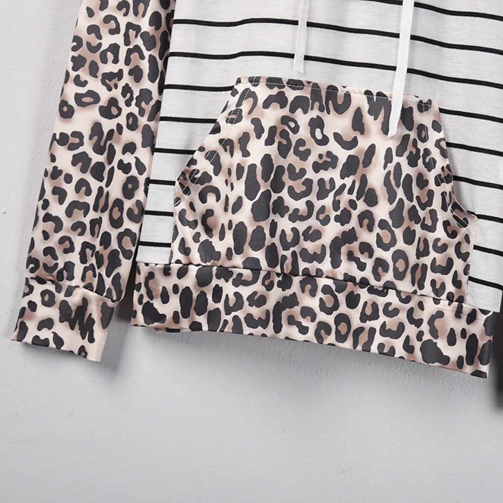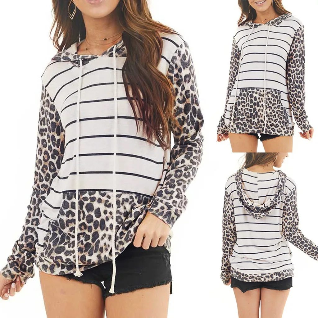 Женская Полосатая блуза с длинными рукавами и леопардовым принтом