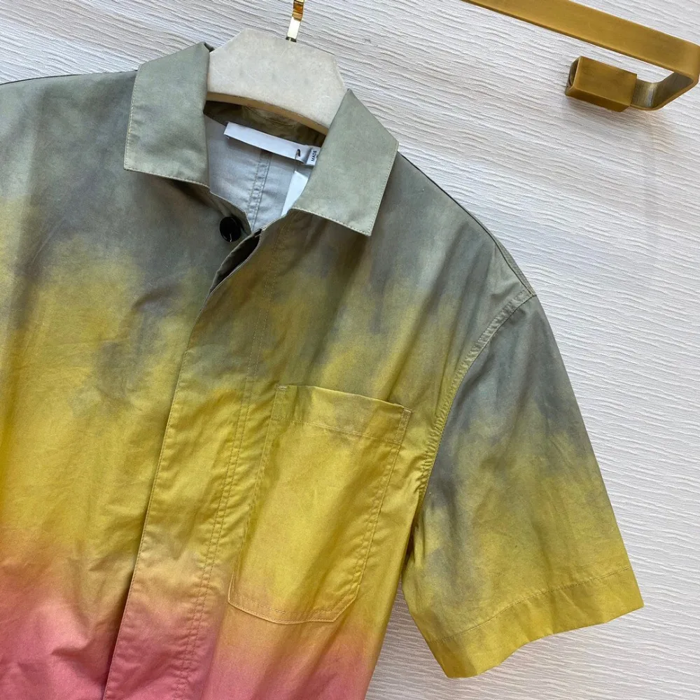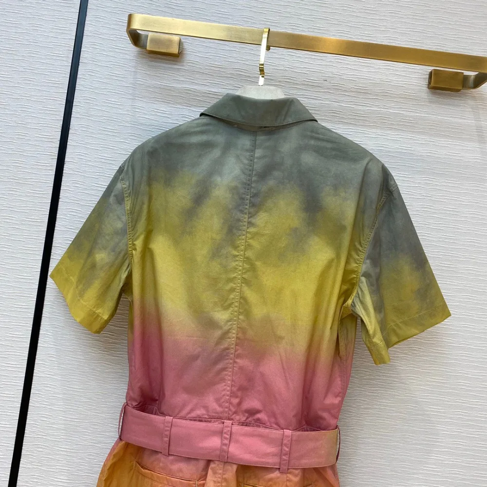 Подиумный дизайн, женские комбинезоны, градиентный цветной галстук-краситель, с отворотом, короткий рукав, тонкий пояс, ретро комбинезон, высококачественный Летний милый комбинезон