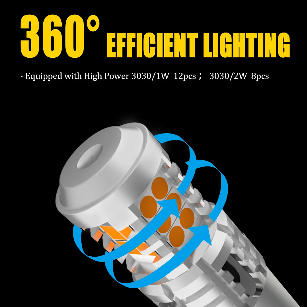 1. Безошибочный дизайн сигнала поворота, воспроизведение и подключение 2. Мощность: 21 Вт 3. Световой поток: 2800LM 4. Напряжение: 12 В постоянного тока 5. Цветовая температура: 3000K Янтарный Желтый 7. Светодиодный чип: 3030/1 Вт 12 шт. + 3030/2 Вт 8 шт. 6. Материал: алюминиевый корпус быстро нагревается 8. Постоянная температура: -40 ~ + 120 градусов Цельсия 9. Водонепроницаемость: IP68 10. Срок службы более 50 000 часов 11. Гарантия 1 год
