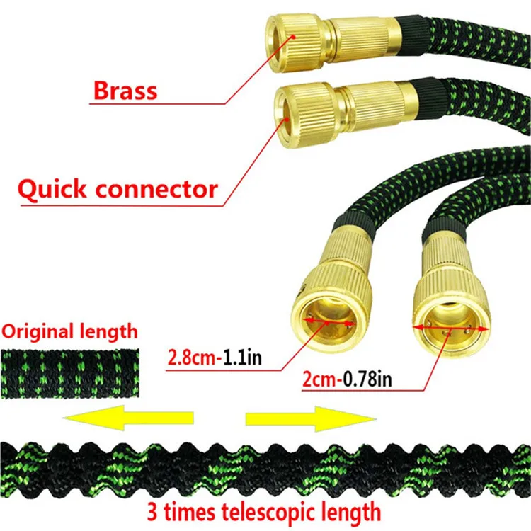 Название продукта: телескопический шланг высокого давления Материал: алюминиевый сплав + внутренняя трубка из ТПЭ + плетеный рукав из полиэстера Цвет: черный, зеленый, черный, синий Размер: 25 футов: 7,5 м после впрыска воды (оригинальная длина 2,5 м) 50 футов: 15 м после впрыска воды (оригинальная длина 5 м) 75 футов: 22 м после впрыска воды (оригинальная длина 7,5 м) 100 футов: 30 м после впрыска воды (оригинальная длина 10 м) Примечание: 1 */в три раза расширение и сжатие могут быть полностью расширены под высоким давлением воды и только 1-2 раза под низким давлением воды. 2 */посылка включает в себя: 1/* шланг (не включая водяной пистолет), 2 */шланг + водяной пистолет + многофункциональный разъем 3 */выше 2 вида упаковок. 4 разных размера, пожалуйста, внимательно проверьте перед покупкой, спасибо 4 */процесс впрыска воды может быть расширен до соответствующей длины. Как только вода проходит через водопроводную трубу, длина водопровода будет увеличена, и вода не пройдет. Для удобства использования, веса и без места светильник откажет свою первоначальную длину. Шланг упакован в высококачественную ткань, которая красива и долговечна. Применимые случаи: подходит для орошения и очистки: садов, автомоек, развлекательных автомобилей, бассейнов, лодок и т. д.