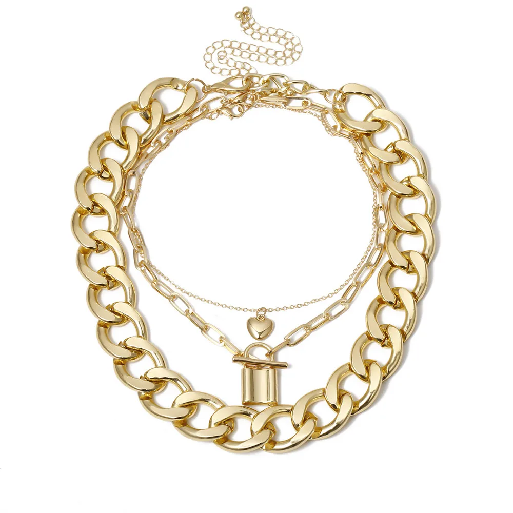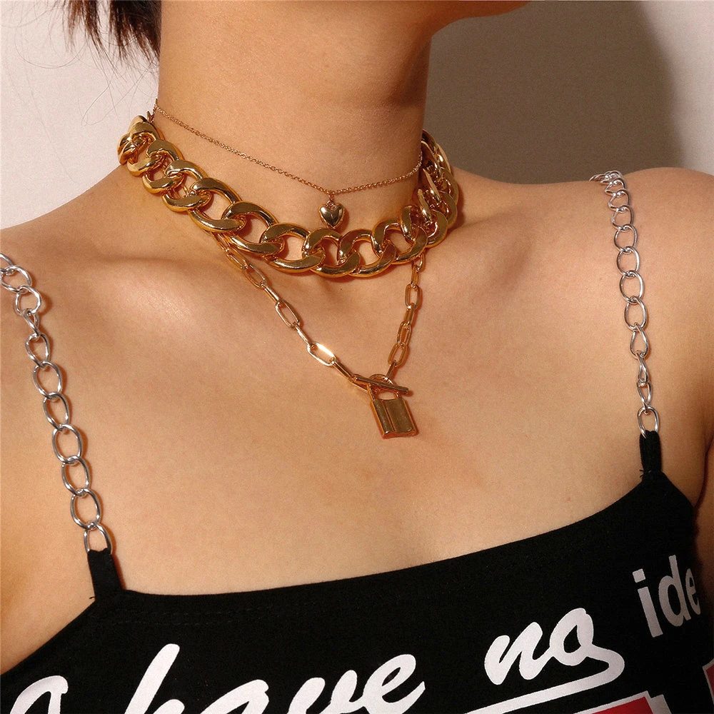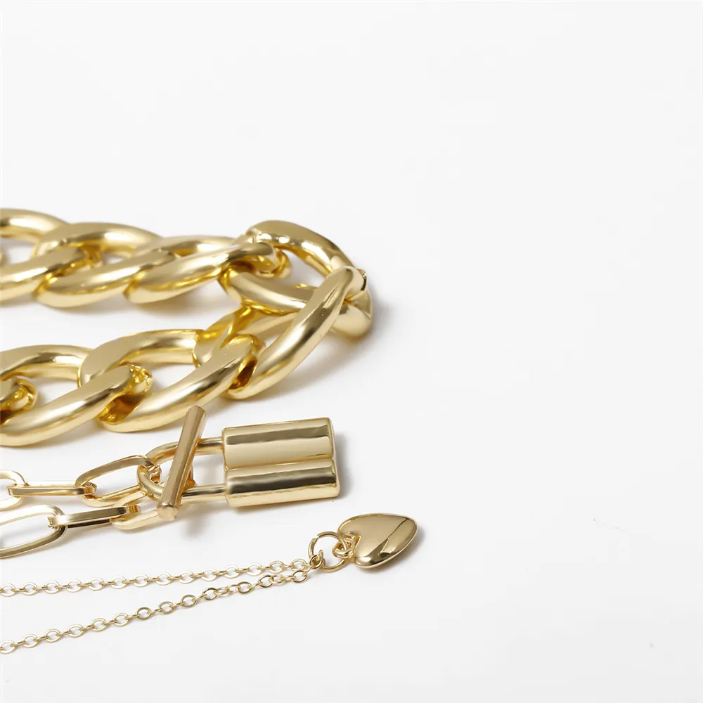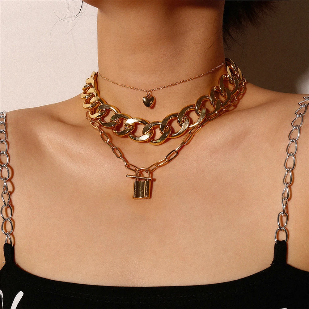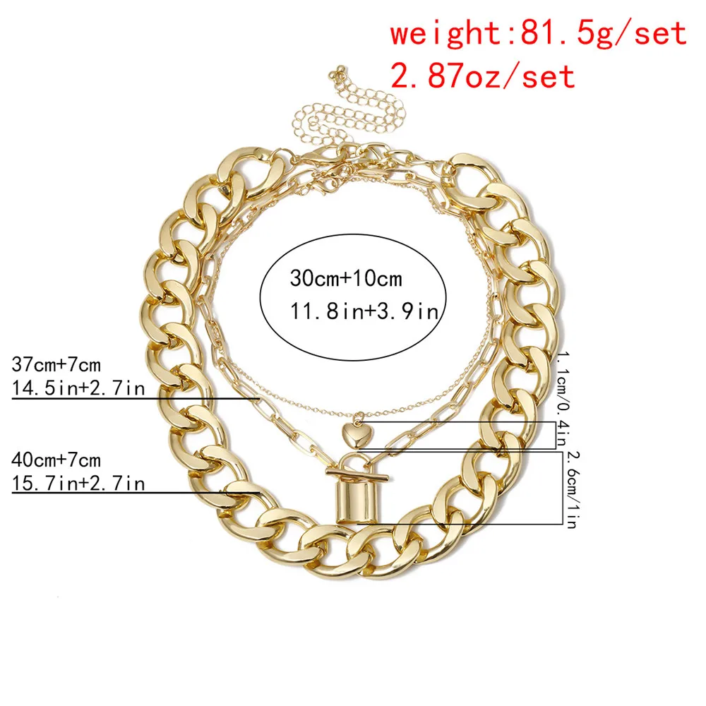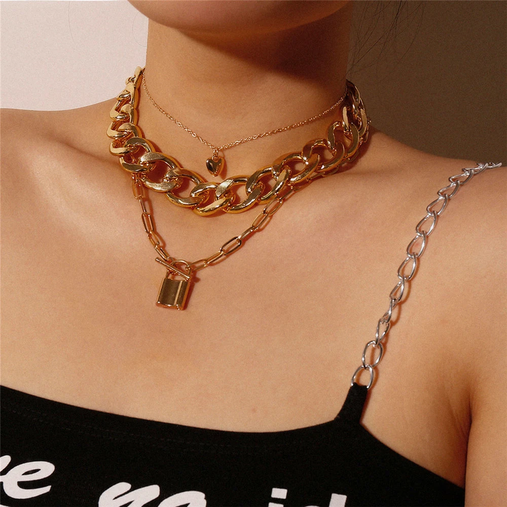 Материал: сплав Цвет: Золотой Посылка: 3 шт./компл. Стиль: многослойное ожерелье в стиле панк/хип-хоп