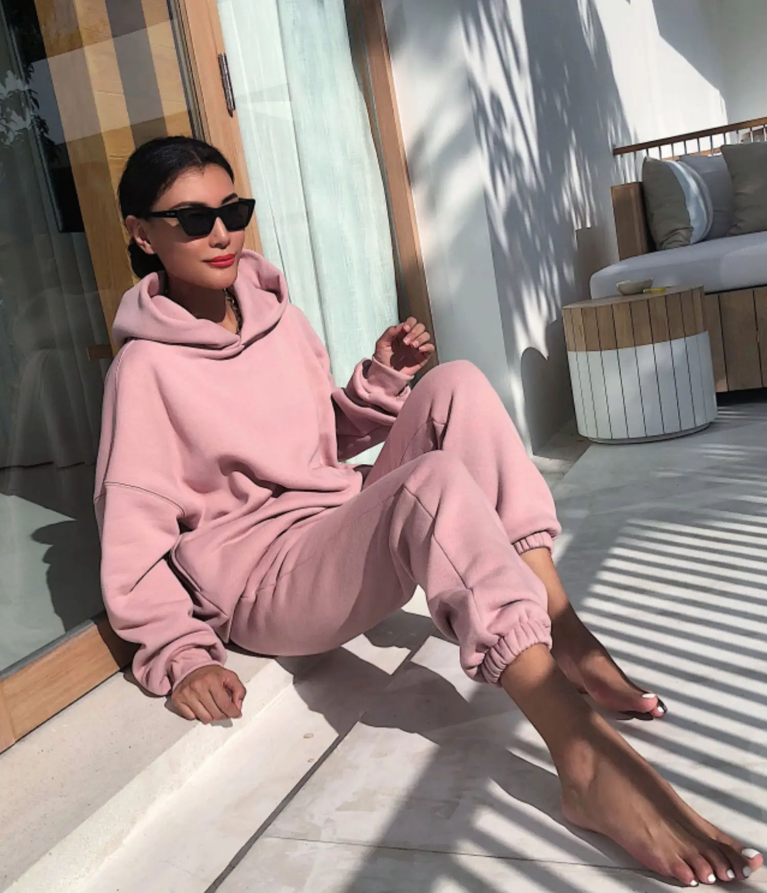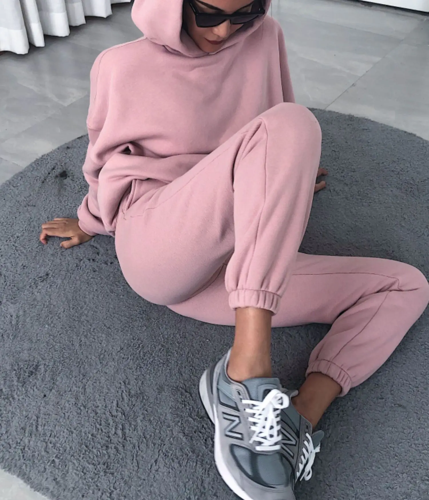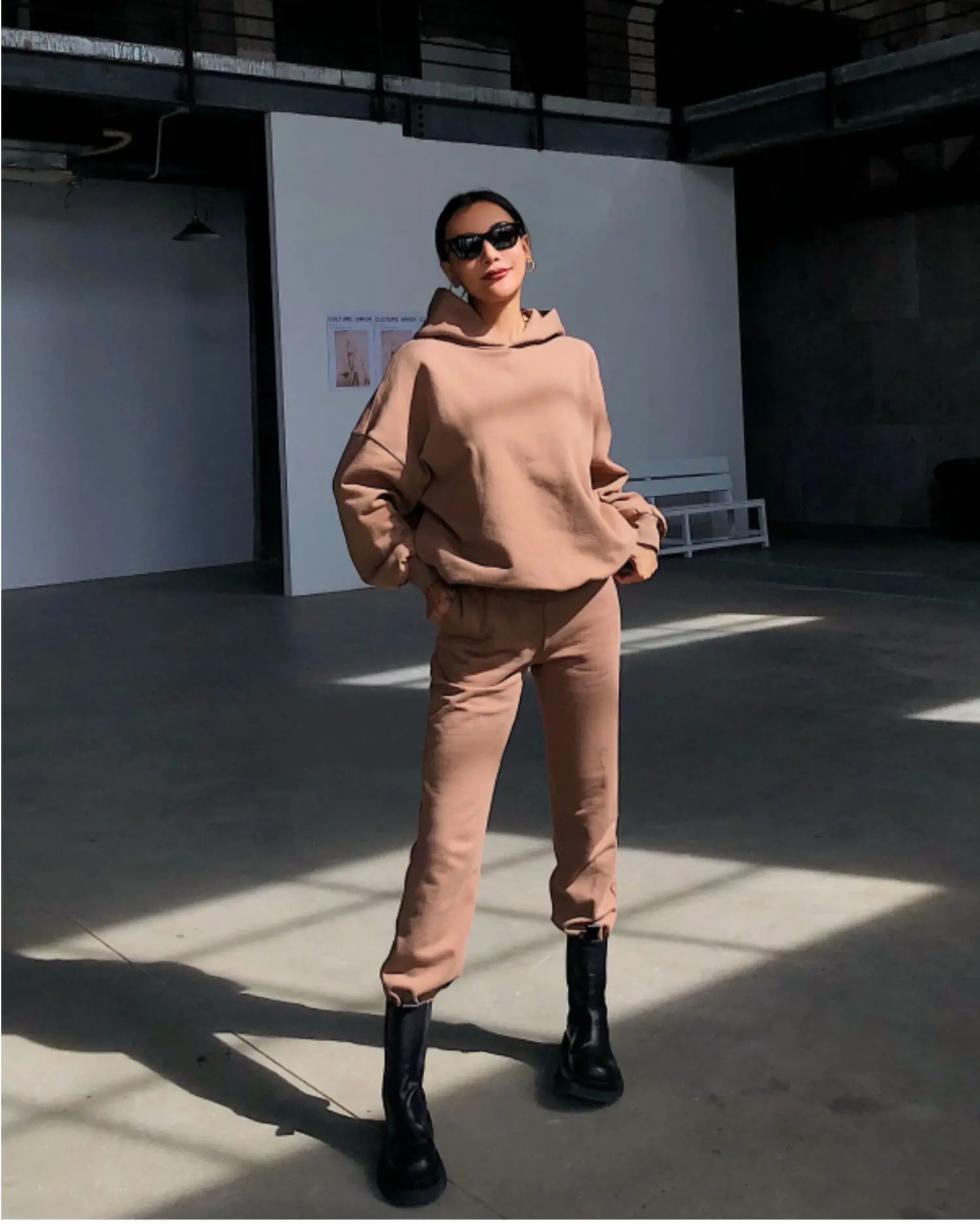 Комплект из двух предметов; Однотонные комплекты; Женские спортивные костюмы; Комплект из 2 предметов; Сезон осень-зима; Флисовая толстовка с капюшоном оверсайз + спортивные штаны; Костюм
