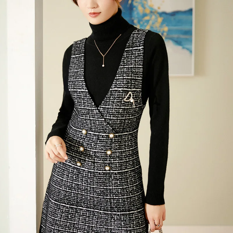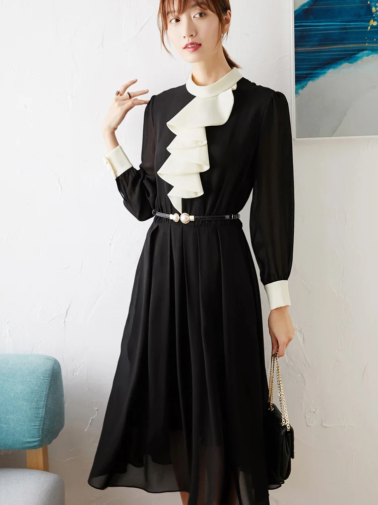 Новое шелковое платье с воротником под горло из шерсти l...US $159,00