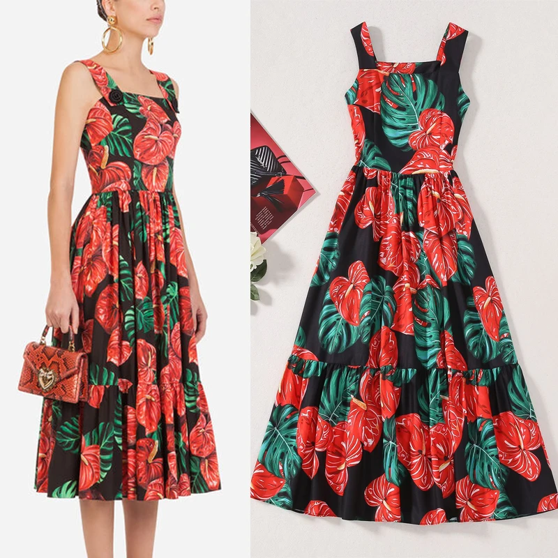 Новое красное Модное Длинное платье без бретелек с принтомUS $77,21
