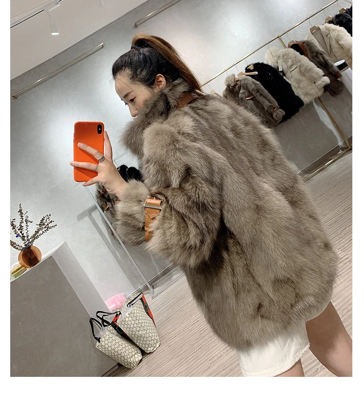 Размера плюс индивидуальные Пальто из натурального меха енота теплая уличная