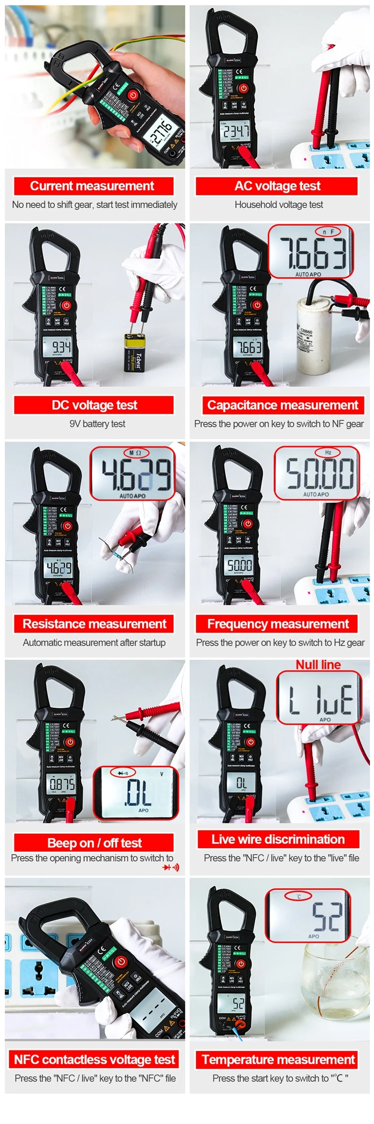 Полностью автоматический Диапазон Цифровой мультиметр точность истинный RMS клещи AC DC Напряжение Ток темп NFC Multimetro измеритель частоты