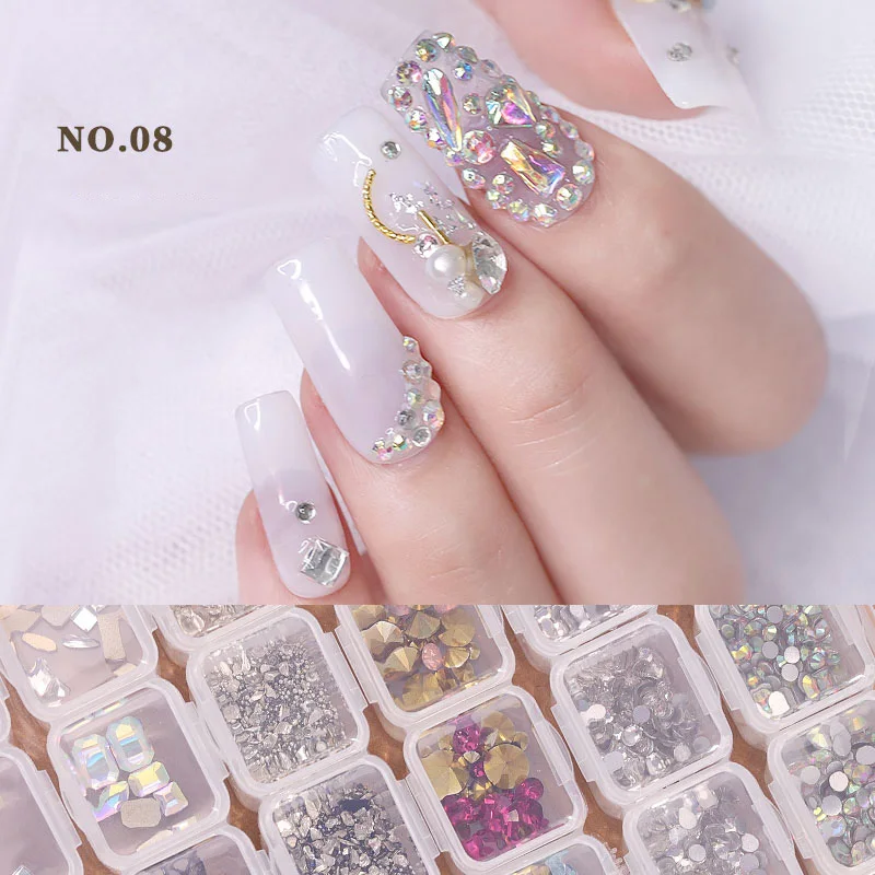2019 28 Cells Nail Art Decorations Set Mix Pearls Metal Rhinestone Flakes DIY Accessories Kits for UV Gel Nails |