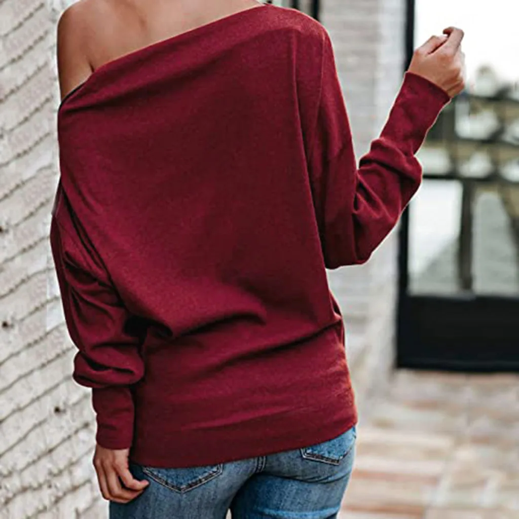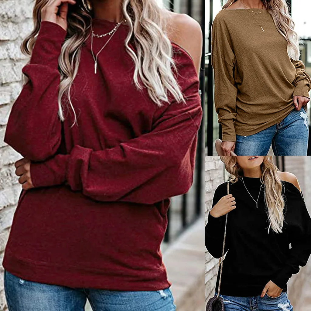 Толстовка с длинными рукавами; Повседневная Блузка с открытыми плечами