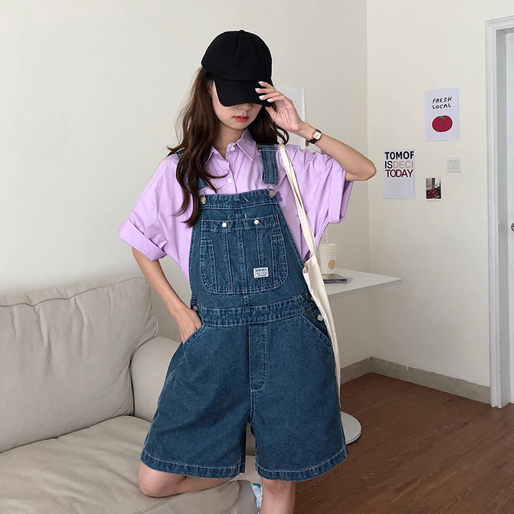 SML Summer korean preppy style Jumpsuit Denim Overalls Casual Girls blue Jeans Shorts womens