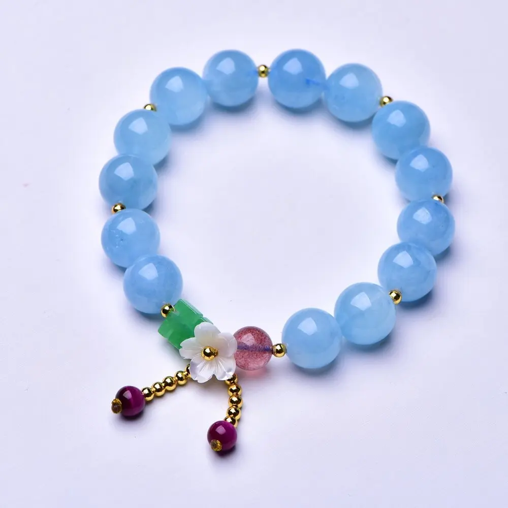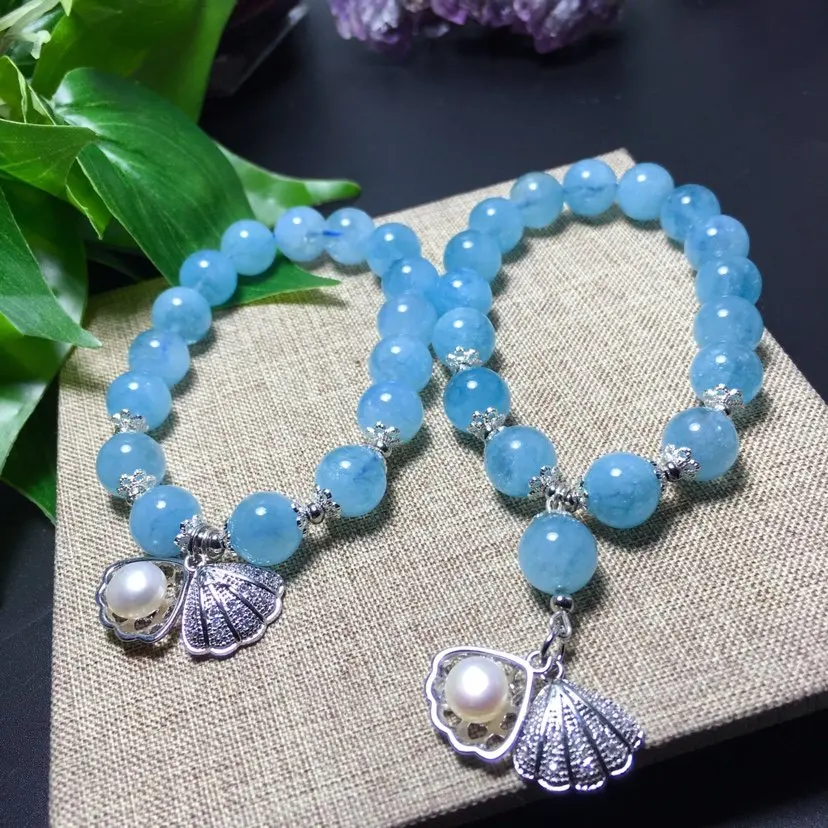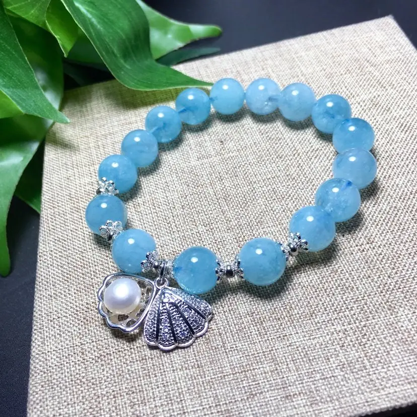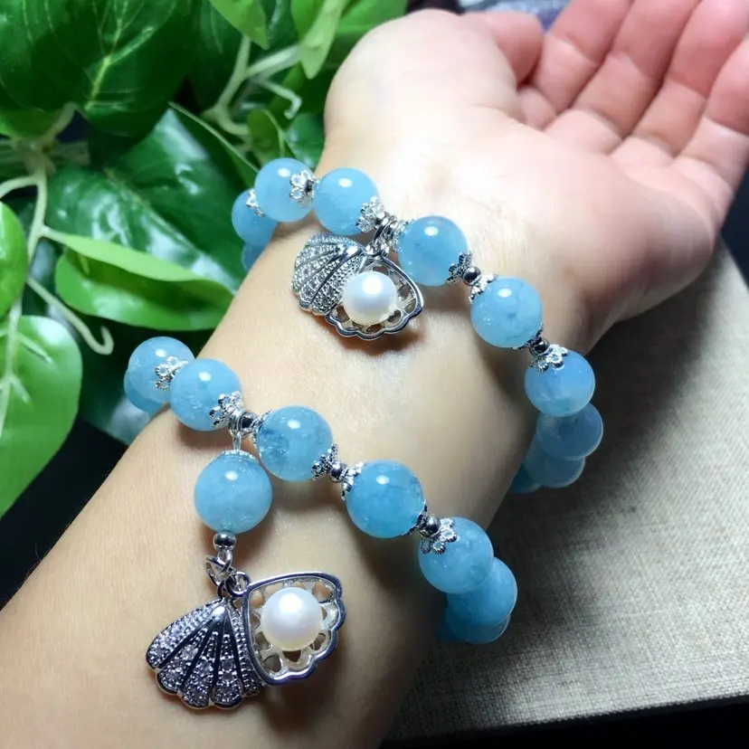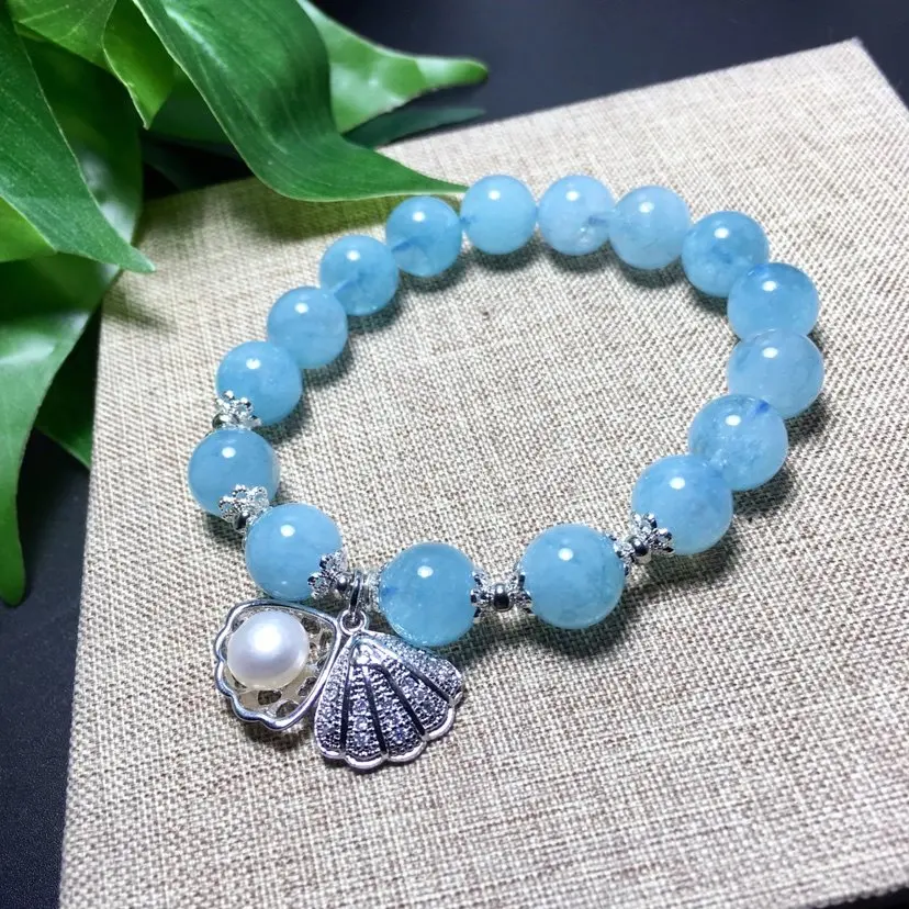 Чистый натуральный Аквамариновый браслет, яркий цвет, символизирующий спокойствие и спокойствие, повышение языковых навыков и продвижение общения. Размер около 12*10 и поддержка обнаружения