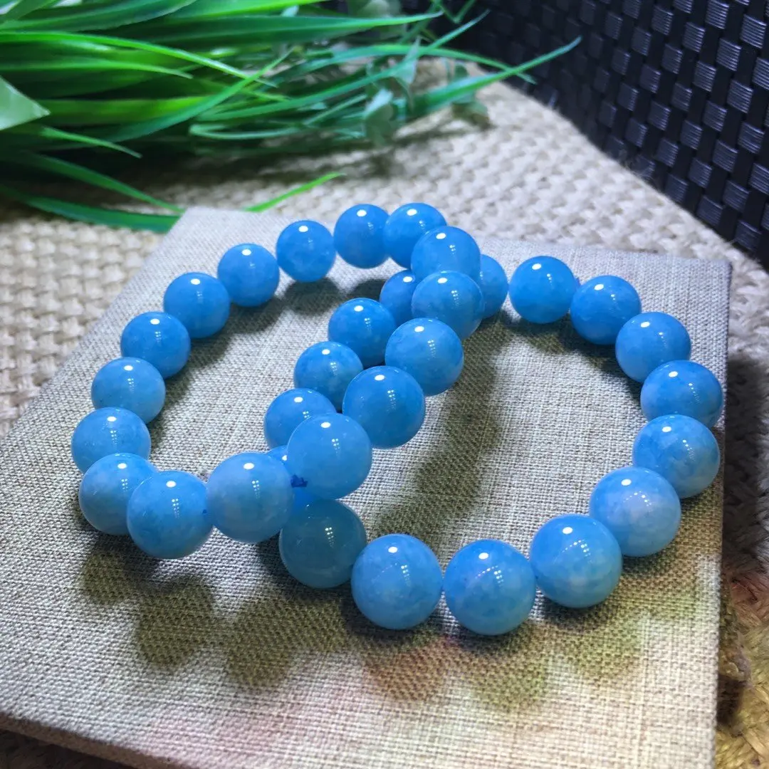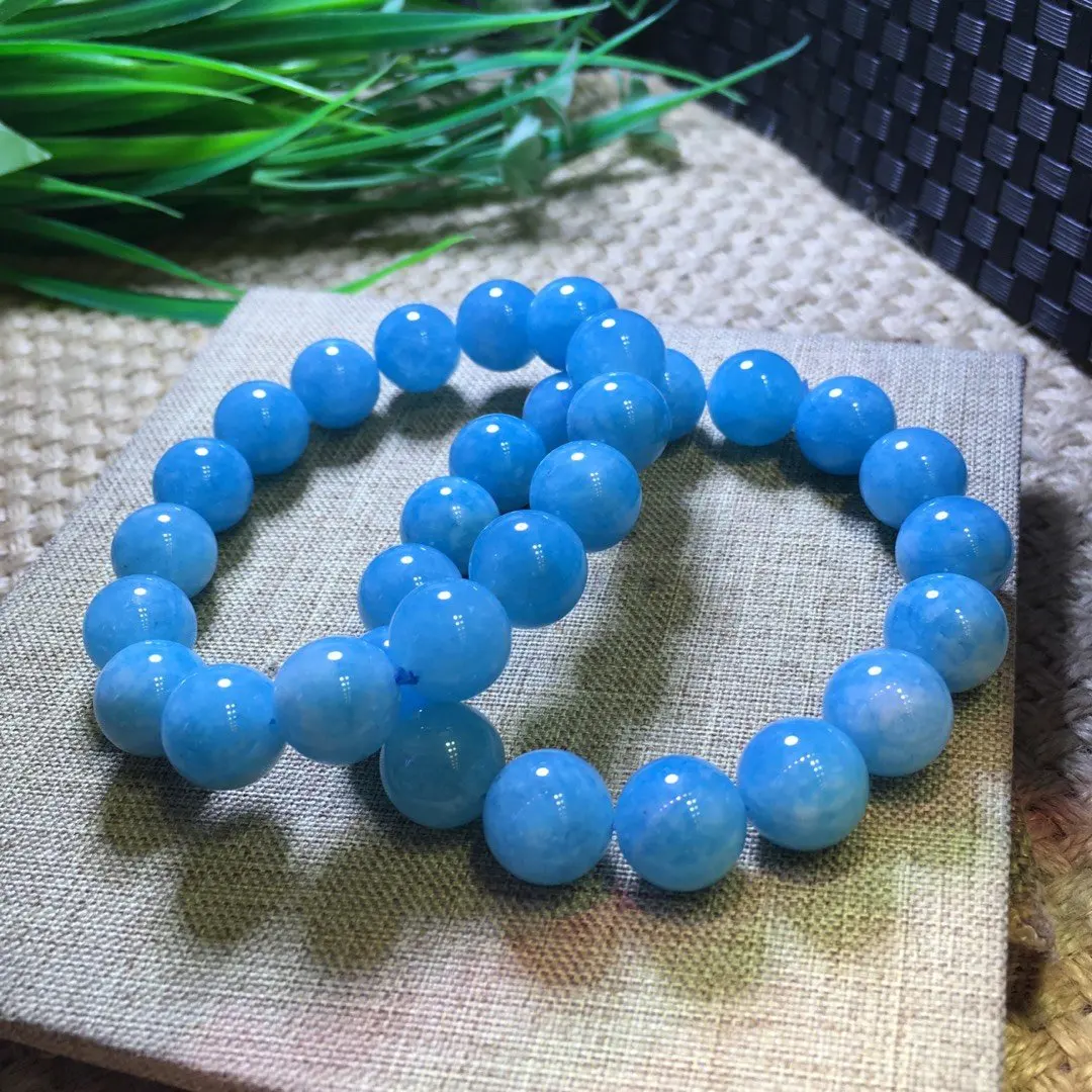 Аквамарин одиночный Круглый браслет около 12 мм, Кристалл ледяной, цвет неба‼Яркие кристаллы морского синего цвета очень гладкие, прозрачные и яркие. Аквамарин может увеличить языковую способность поддержки обнаружения