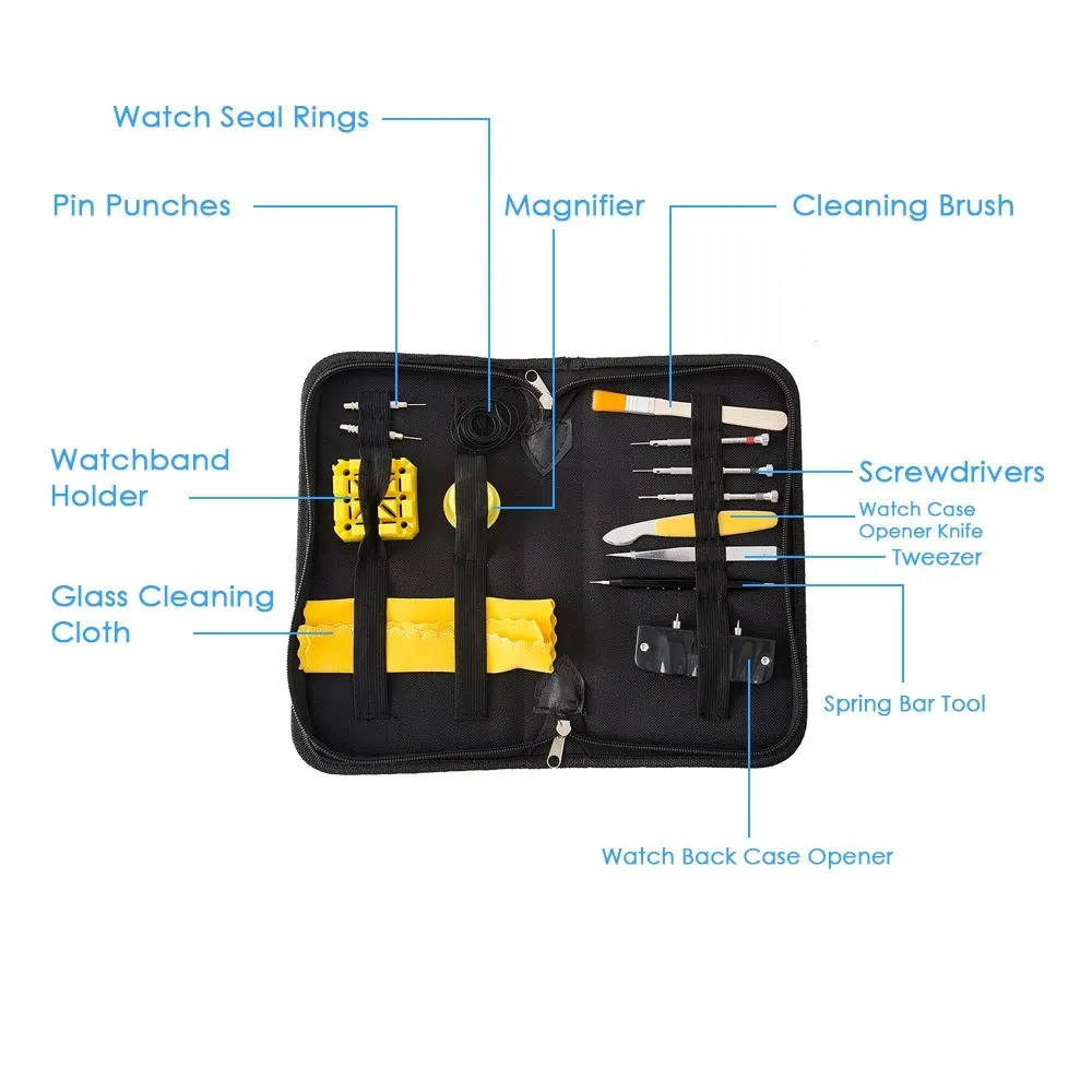 Высококачественный набор инструментов для решения требований к ремонту часов, таких как: Замена батареи, удаление звеньев, для открывания сзади, изменение размера ремешка, удаление пружинных стержней и т. Д. Подходит для общего использования.