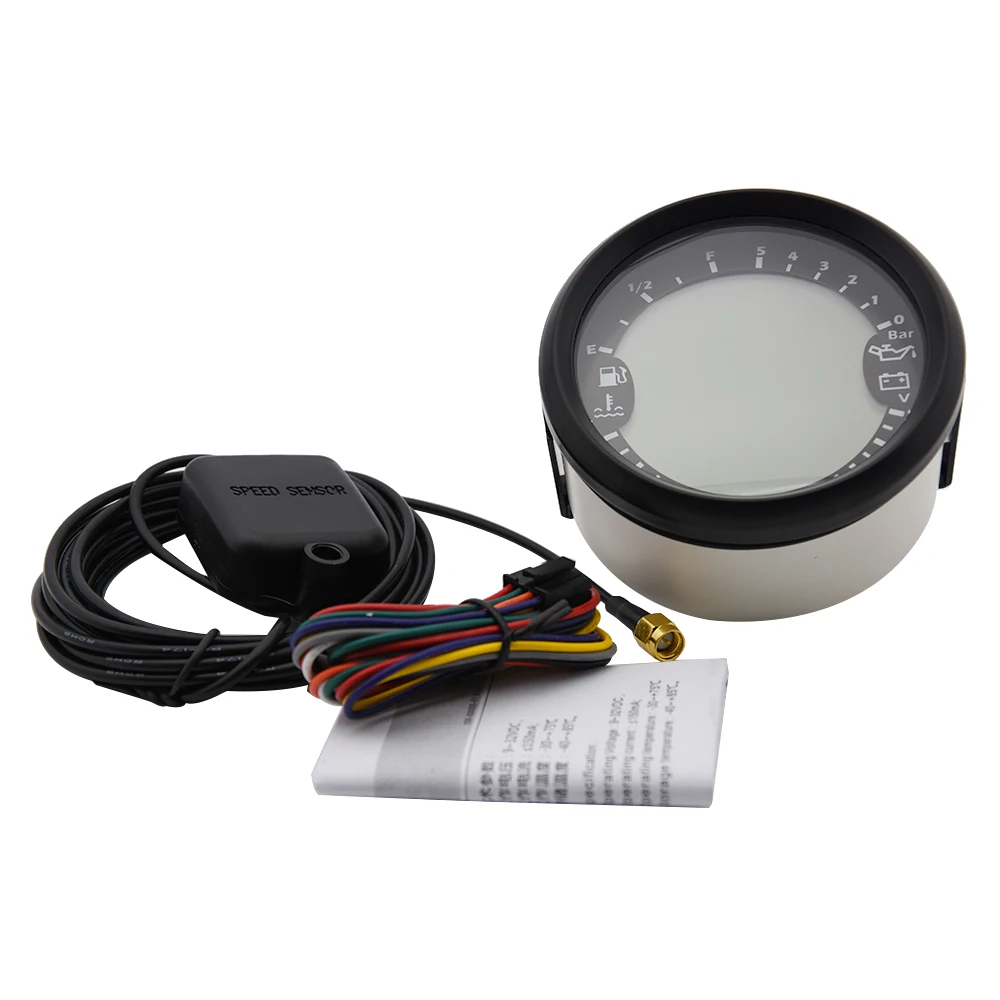 -Размеры фиксации: 85 мм (3-3/8 ") -Диапазон индикации: GPS Спидометр Тахометр час метр час -Температура воды Уровень топлива масла вольтметр давления-Рабочее напряжение: 8-16 В -Подсветка: красный, оранжевый, зеленый, желтый, синий, фиолетовый, белый (вы можете нажать кнопку, чтобы изменить цвет)