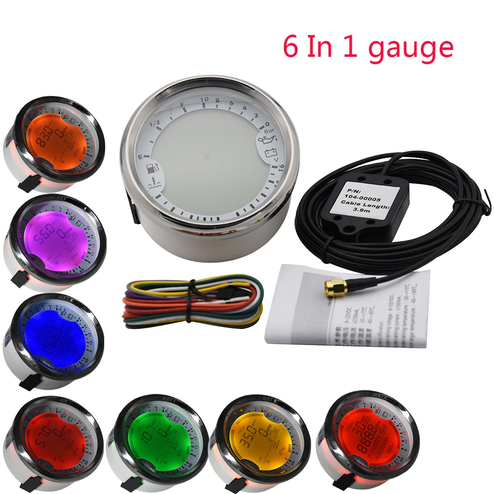 85 мм GPS измеритель скорости 6 в 1 Многофункциональный цифровой тахометр уровень топлива Вольт Датчик скорости 7 цветов вольтметр с подсветкой одометр