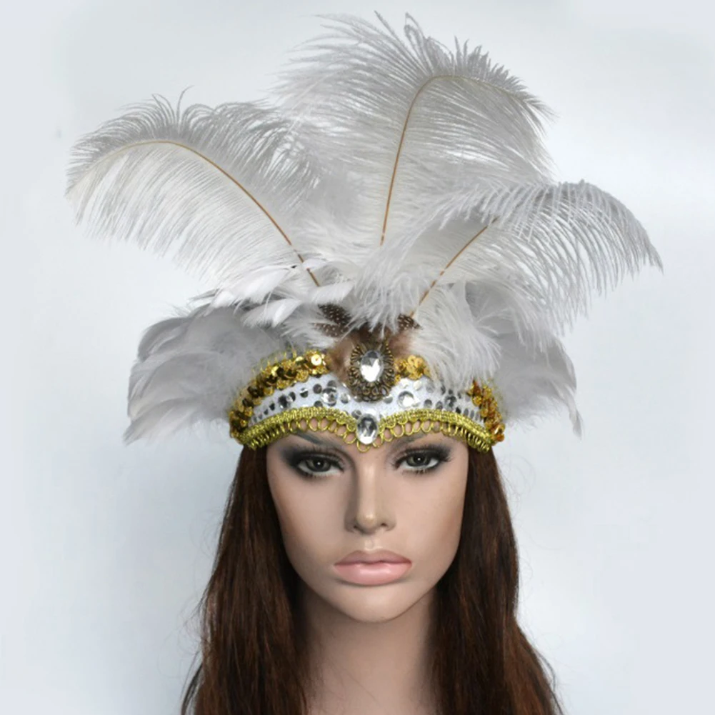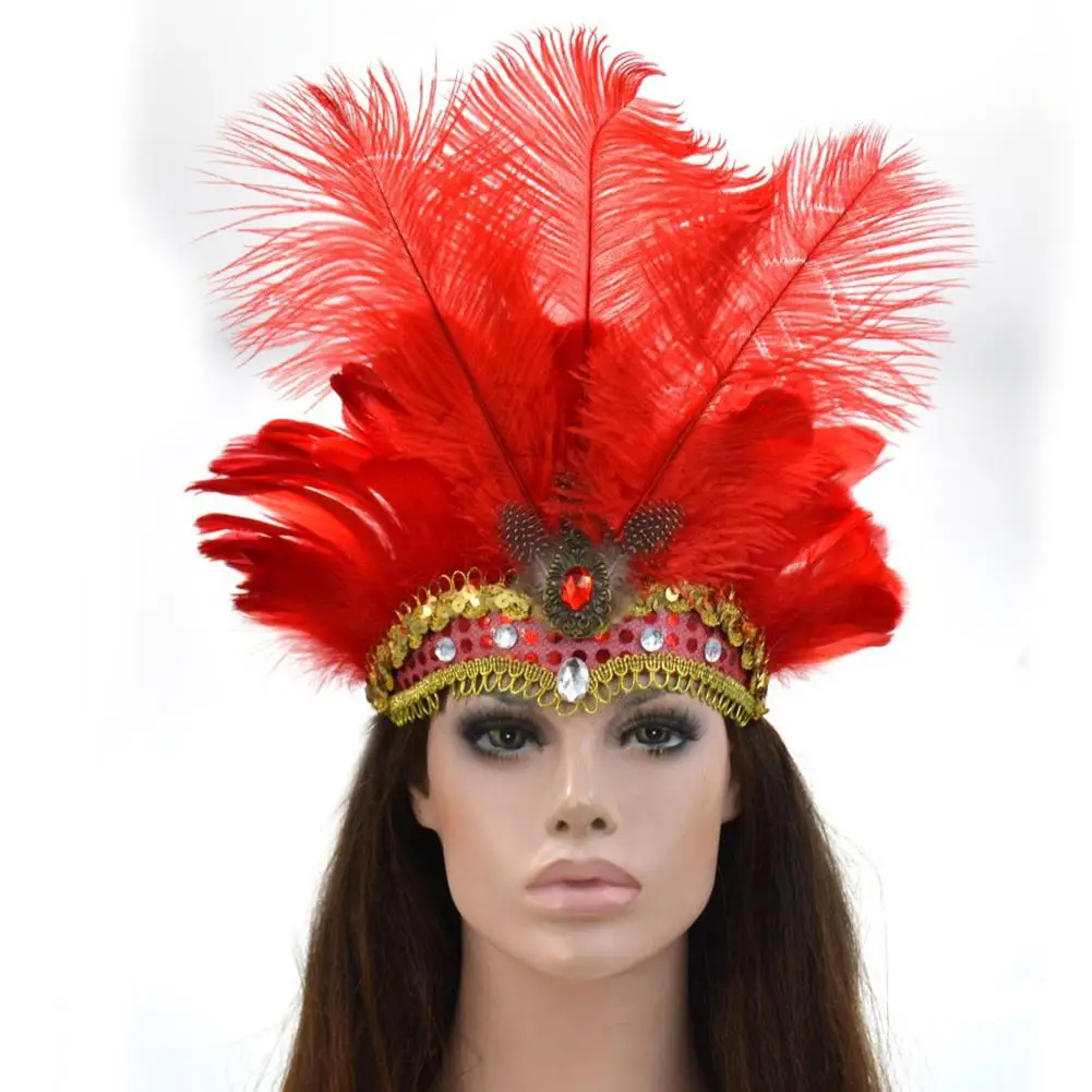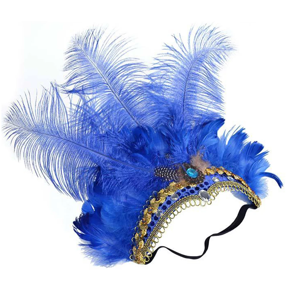Женские Стразы с блестками, перьевая повязка на голову, вечерние головные уборы для танцев на Хэллоуин