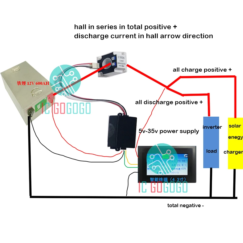 1: красный провод экрана является положительным полюсом источника питания 5-35 в, а черный провод-отрицательным полюсом источника питания. Мощность может быть отключена в любое время, не влияя на данные. Данные передаются по кулона счетчик. 2: желтая линия на экране RS485 A, а зеленая линия RS485 B. Подключите его к RS485 счетчика colomb. Датчик температуры может быть прикреплен к батарее Он установлен. Если интерфейс отображает напряжение батареи и другие данные, это означает, что установка завершена. Время связи, экран не будет отображать подключение! Настройка задержки сенсорного экрана для выключения. Пожалуйста, установите режим подсветки в других параметрах, установите «long off», коснитесь большого экрана, и он автоматически выключится в течение 30 с Комплект из 3 предметов: параметры, нажмите на 12v 600ah литий-железо-фосфатных аккумуляторов и так, как показано на рисунке. В настройках цветного экрана найдите часто используемые параметры, найдите номинальную мощность и установите его на 600 Ач, пониженное напряжение до 11 в и полное напряжение до 14,2 В. Затем заполните один раз. Если аккумулятор не заряжен или не разряжен, ток должен быть 0A. Если есть небольшой ток, вы можете установить ток до нуля в других параметрах. Может быть применен для четырехколесных транспортных средств, RVs, хранения энергии, больших мобильных источников питания и т. Д.