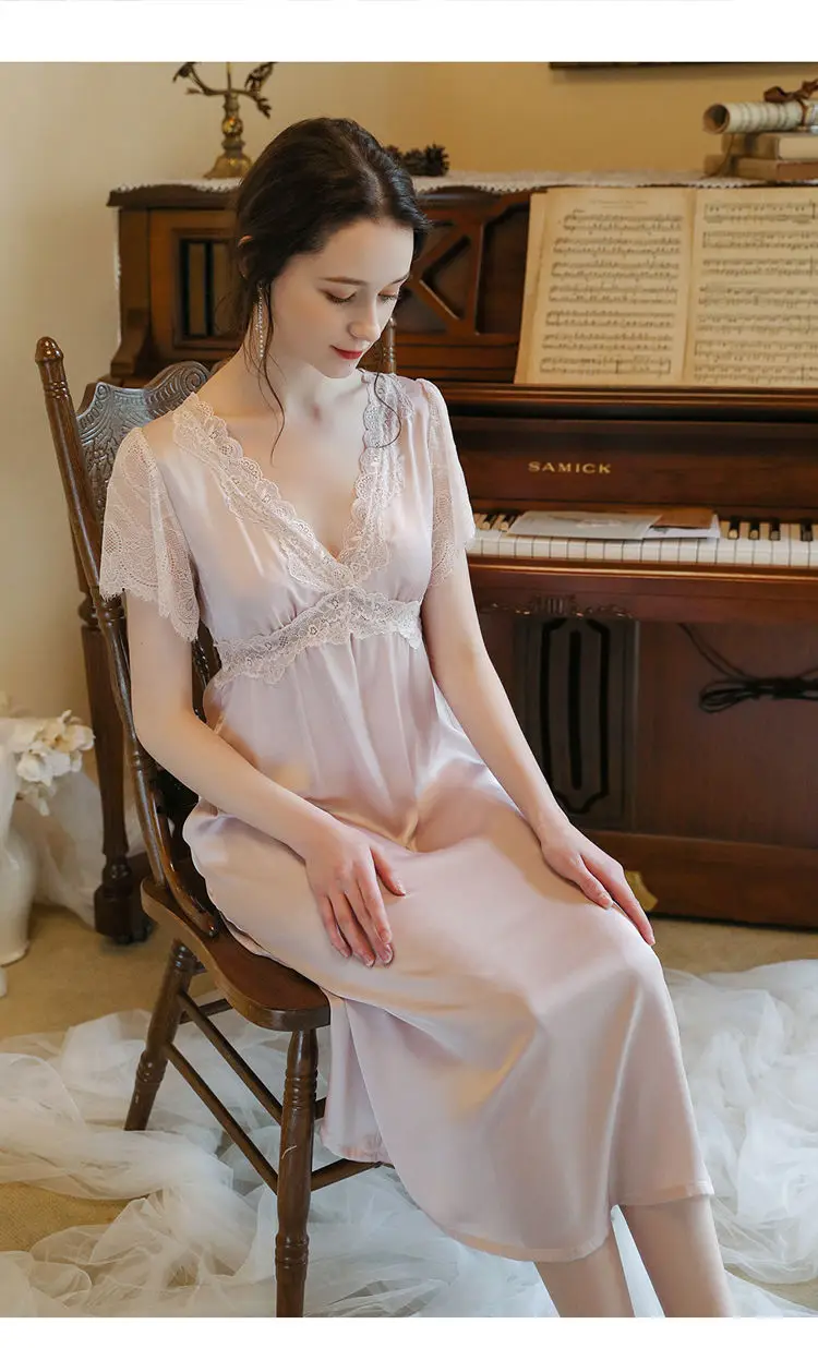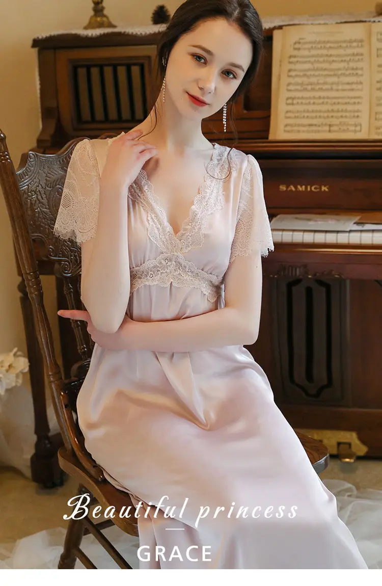HNMCHIEF розовое шелковое кружевное сексуальное женское белье, атласное с v-образным вырезом, длинная ночная рубашка, платье, Babydoll, нижнее белье, юбка